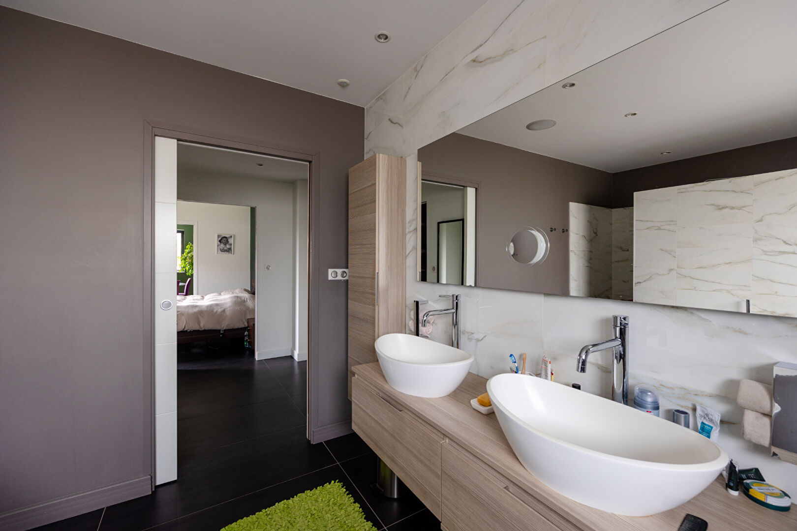 Dans un clos privé, dans une petite copropriété très soignée, découvrez ce superbe appartement d'architecte de 150 m² de plain-pied nichée dans la colline alliant élégance contemporaine, volumes généreux et prestations haut de gamme. Une belle entrée dotée de placards et penderies sur mesure distribue harmonieusement les différents espaces. L'appartement s'ouvre ensuite sur un magnifique espace de vie de 63 m² baigné de lumière, avec de larges baies vitrées offrant un accès direct à une terrasse de 20 m² orientée sud, à l'abri des regards, bénéficiant d'une vue dégagée verdoyante et imprenable. Cet ensemble de vie se distingue par : Un salon lumineux avec une superbe hauteur sous plafond Une salle à manger élégante Une cuisine contemporaine entièrement meublée et équipée, réalisée avec des matériaux de grande qualité, un électroménager dernière génération Un bureau indépendant idéal pour le télétravail . L'espace parental se compose d'une chambre spacieuse, d'un dressing aménagé et d'une salle d'eau aux finitions soignées. Un salon TV / cinéma haute technologie pour des moments de détente Une seconde chambre avec salle d'eau privative vient compléter l'espace nuit, A l'extérieur, vous bénéficierez d'un garage double côte à côte équipée d'une borne de recharge ainsi que de trois places de stationnement privatives, idéales pour recevoir famille et amis en toute sérénité. Chauffage au sol, puit canadien, volets électriques, alarme, sonorisation.... Aucun travaux à prévoir Chauffage gaz compris dans les charges. Un bien rare, conjuguant discrétion, modernité et standing, dans un environnement résidentiel recherché. Nous consulter Alain VINCENT 06 08 60 13 17 L'Immobilière HEYTIENNE Copropriété de 12 lots - dont 6 lots habitation. Charges annuelles : 2400 euros. Alain VINCENT (EI) Agent Commercial - Numéro RSAC : - .