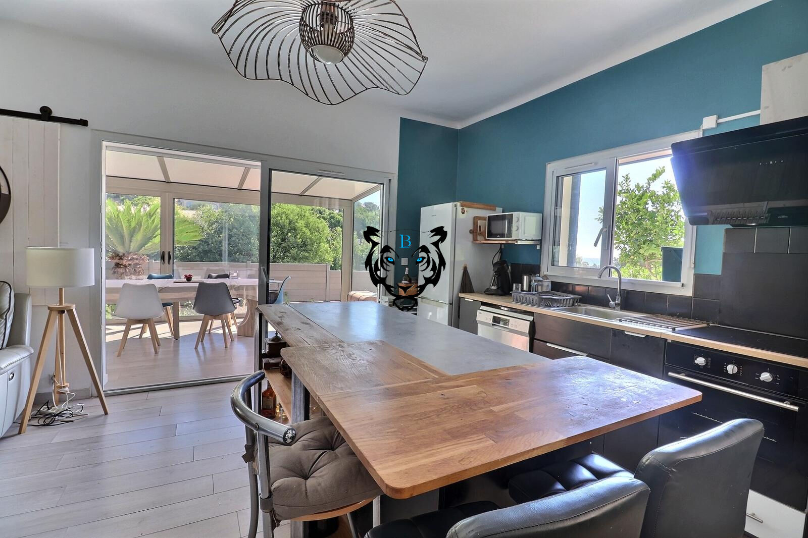 Mer et Prestige Benicimmo vous propose une opportunité rare aux Issambres : vue mer de toutes les pièces pour cette maison (127 m2 habitables et 160 m2 avec annexes) située à 300 mètres du bord de mer proche du centre de San Peire à pied. Cette maison rénovée et climatisée se compose : - En rez-de-jardin, un séjour vue mer avec cuisine ouverte ouvrant sur véranda et terrasse vue mer, une chambre avec douche, un patio. - A l'étage, 2 suites parentales avec balcons, 1 chambre, une salle de bains, une pièce polyvalente pouvant servir de bureau ou de salle de jeu. Le terrain de 982 m2 en restanques, entièrement paysagé, se compose d'un espace détente avec vue mer, piscine, jacuzzi et cuisine d été, d'un magnifique verger, de nombreuses zones de rangement et d' un grand garage indépendant motorisé. Panneaux photovoltaïques (seulement 70 euros de facture mensuelle d 'EDF ) et poêle à bois . A découvrir sans tarder en contactant l'agence Mer et Prestige Benicimmo au 04 98 11 40 00. Prix de vente : 998 000 euros honoraires à la charge du vendeur. Informations sur les risques disponibles sur le site : www.georisques.gouv.fr