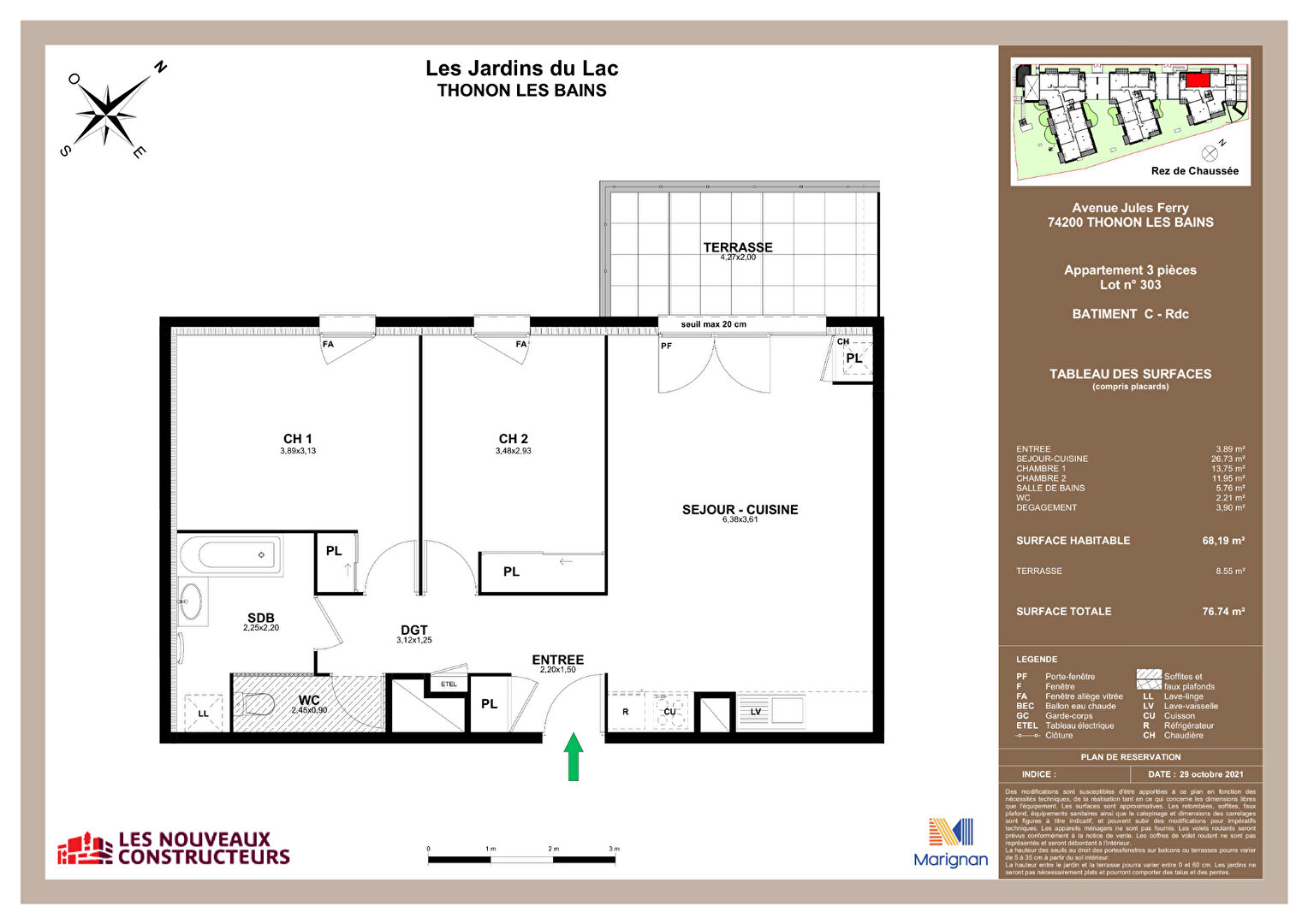 Logement neuf T3 de 68 m² en RDC à Thonon Les Bains - avenue Jules Ferry Cet appartement situé au RDC d'un immeuble neuf, possède une entrée, une cuisine ouverte non-équipée donnant sur un séjour ainsi qu'un balcon, un WC indépendant, une salle de bains et deux chambres avec placard. Loyer CC : 1034.14 euros/mois dont 58.06 euros/mois de charges comprenant l'entretien des parties communes. Garage possible en supplément. Chauffage individuel gaz. Eau chaude/froide individuelle. Dépôt de garantie : 1 mois de loyer HC. Logement soumis à conditions de ressources (plancher de revenus minimum à atteindre et plafond RFR à ne pas dépasser). PAS DE FRAIS D'AGENCE. *Entrée dans les lieux le 23/03/2026
