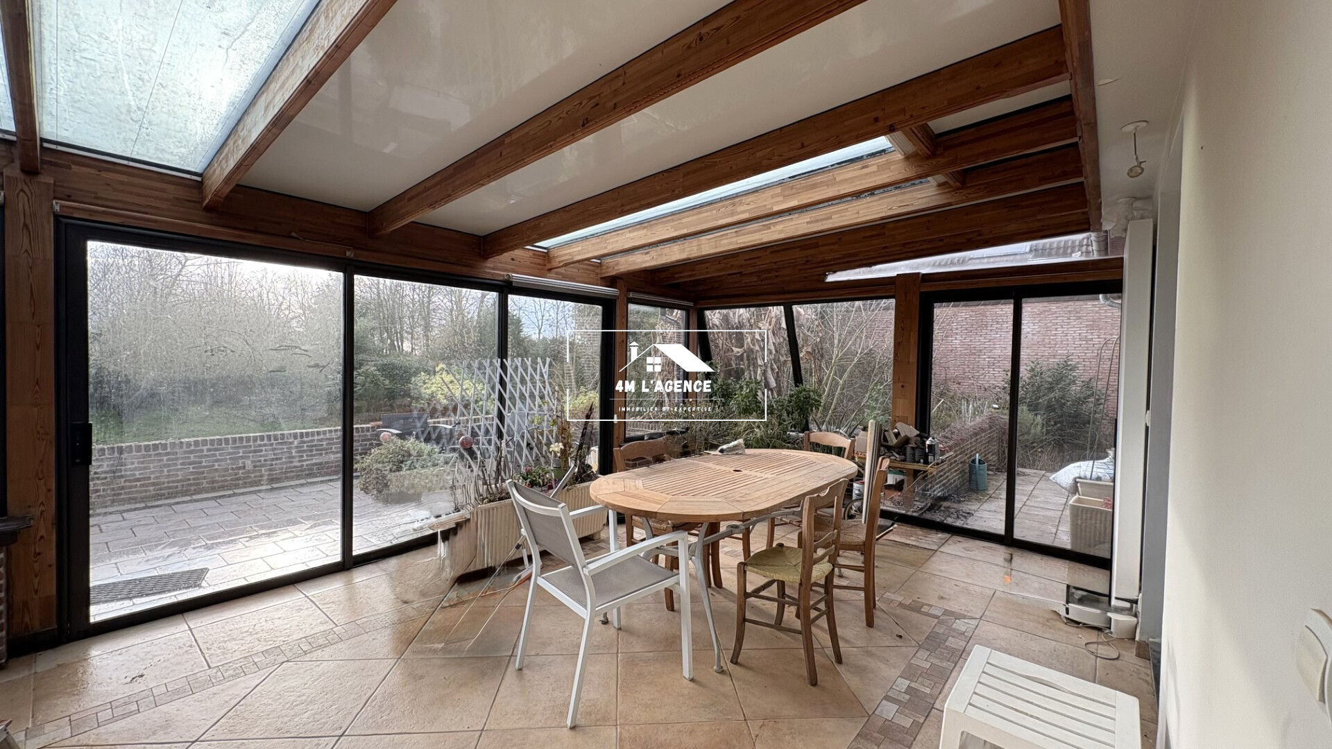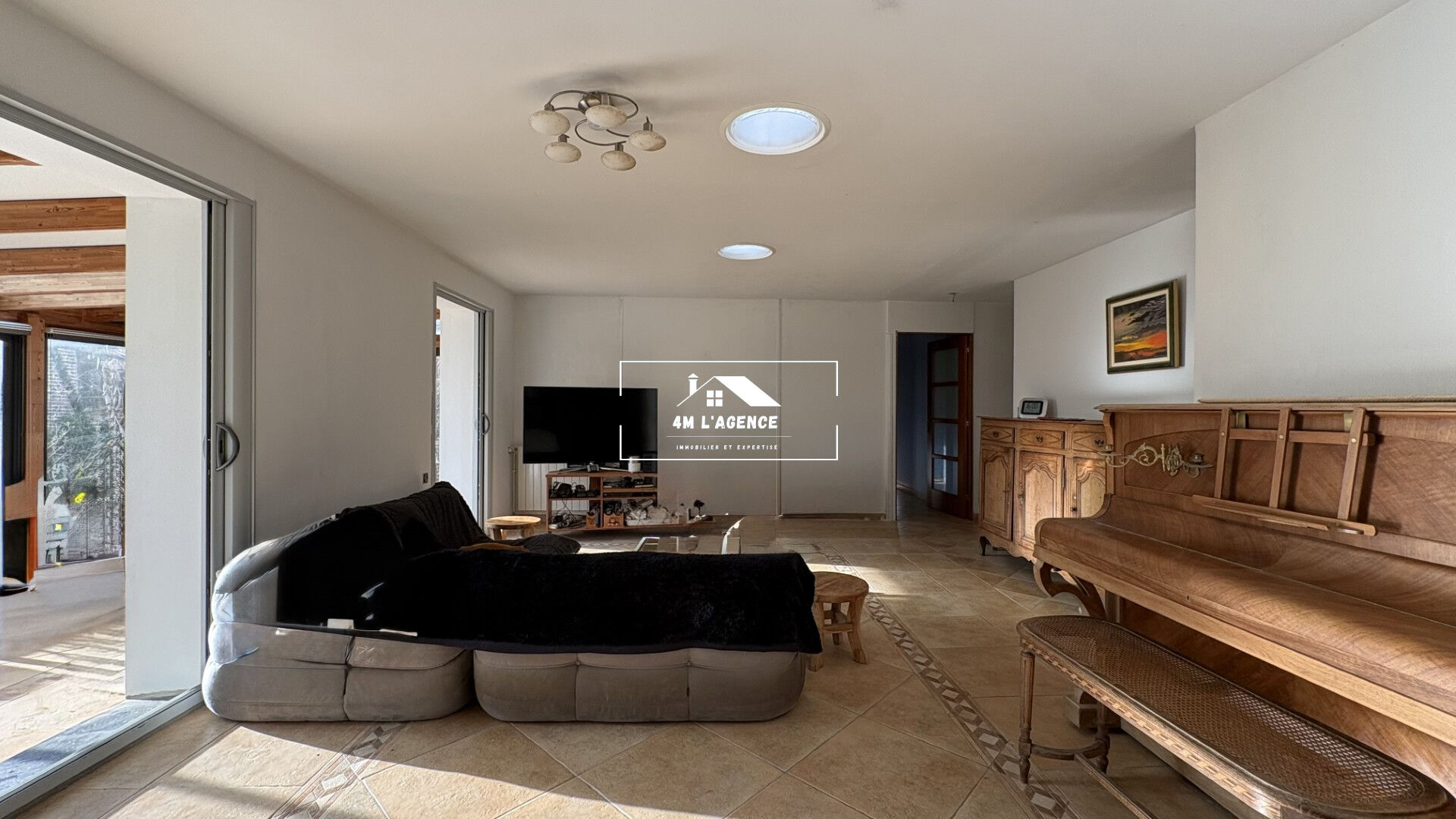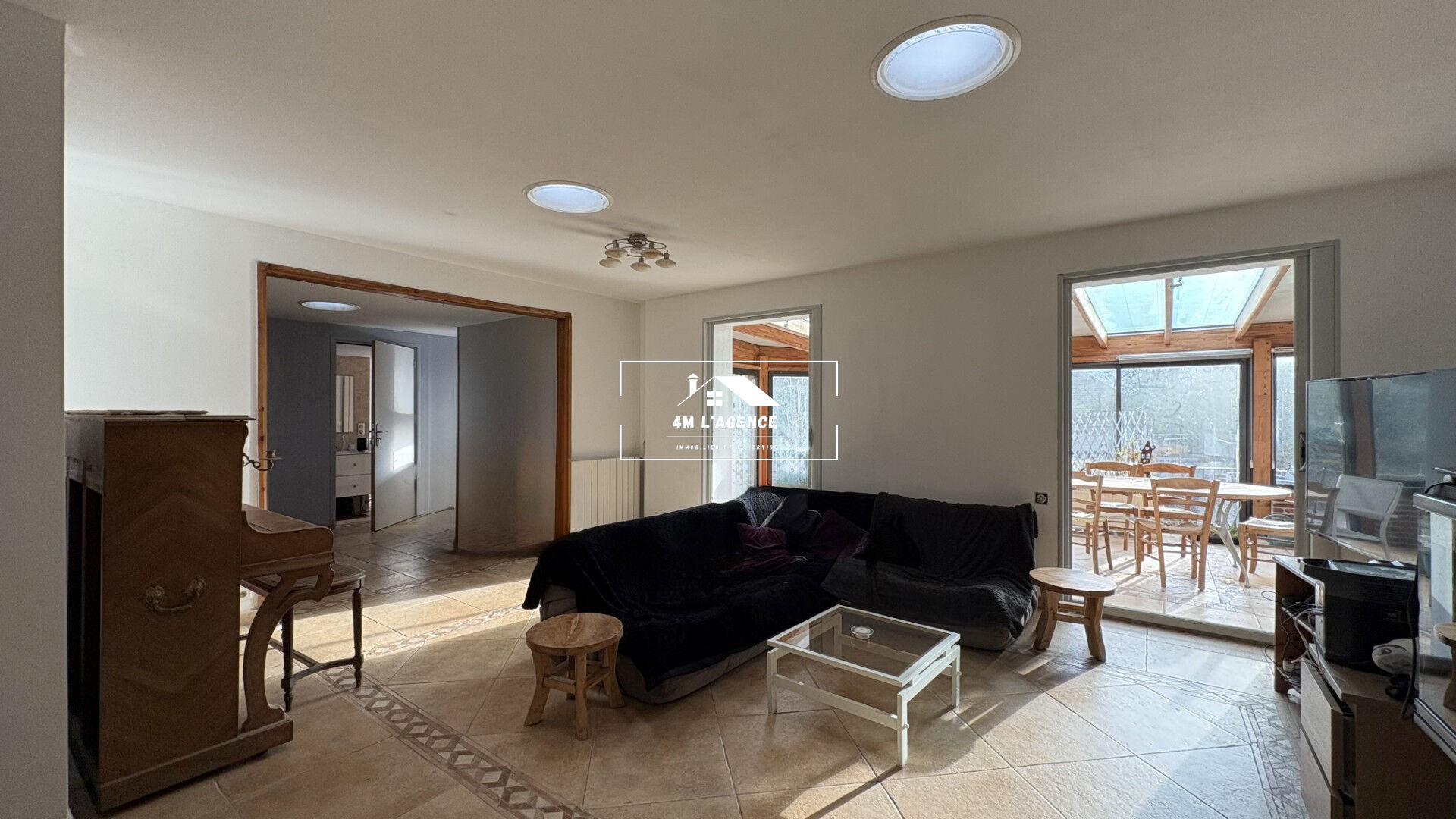 En retrait de rue, au calme absolu, votre agence immobilière 4M vous invite à découvrir ce beau plain-pied individuel niché au coeur d'un terrain clos et arboré de 1 900 m², idéalement exposé plein sud et sans vis-à-vis. Dès l'arrivée, une allée privative permet le stationnement de plusieurs véhicules en complément du garage. A l'intérieur, le hall d'entrée dessert un espace de vie généreux et baigné de lumière d'environ 50m², comprenant un séjour convivial avec cuisine équipée ouverte, parfaitement orienté vers le jardin. Cet espace est prolongé par une grande véranda chauffée de 30 m², véritable pièce de vie utilisable toute l'année, offrant une vue apaisante sur la terrasse et la verdure. Côté nuit, la maison propose une organisation idéale pour la vie de famille. Vous bénéficierez d'une suite parentale d'environ 19,5 m², composée d'une chambre, d'un dressing et d'une salle de bains, avec accès direct à la terrasse par baie vitrée. Trois autres chambres confortables complètent cet espace, dont l'une dispose d'un bureau ou dressing attenant, ainsi qu'un bureau indépendant et une seconde salle de bains récemment rénovée. Les prestations se poursuivent avec de nombreux espaces fonctionnels : cellier / buanderie, garage avec grenier aménagé, ainsi qu'un vaste sous-sol d'environ 90 m² comprenant atelier et cave à vins, idéal pour les amateurs. A l'extérieur, le jardin paysagé et exposé sud offre un cadre de vie privilégié, à l'abri des regards, parfait pour profiter des beaux jours en toute sérénité. Un bien rare sur le secteur, alliant volumes, luminosité, calme et fonctionnalité, idéal pour une famille en quête de confort et de nature. (2.83 % honoraires TTC à la charge de l'acquéreur.)