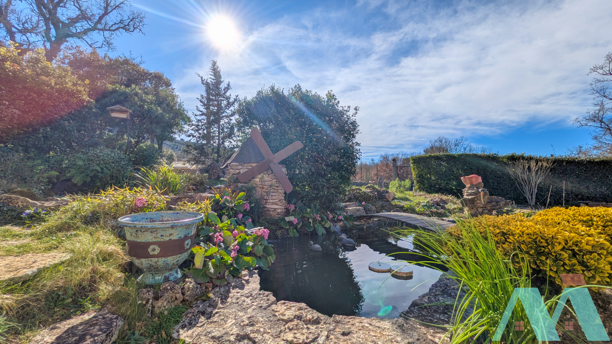 A l'extérieur, une ambiance aussi bucolique que conviviale avec le charmant jardin agrémenté de sa piscine hors-sol (7x3m) et sa plage en bois, la belle terrasse couverte avec barbecue et l'adorable petite bassin à poissons avec son moulin et ses fontaines...l'ensemble appelle à la sérénité, est agréablement aménagé, boisé, fleuri et entretenu. Pour le côté pratique, vous bénéficierez de deux abris démontables de 9m2 chacun et d'un grand abri bois.