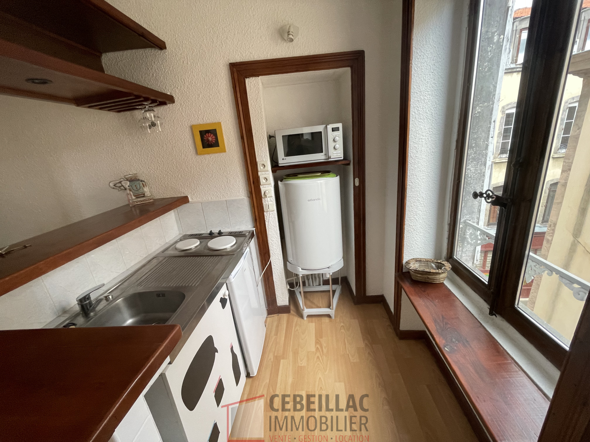 1086 : PLATEAU CENTRAL, bel emplacement à deux pas de la place de la VICTOIRE, à vendre un STUDIO avec un LOCATAIRE EN PLACE depuis juillet 2025. Au 3oétage sans ascenseur, sa surface habitable est de 23m2 (loi Carrez). TRES FONCTIONNEL, Il comprend un petit hall d'entrée avec un placard, une pièce principale avec kitchenette et 'coin salon' et une mini chambre en alcove. Le chauffage est de type individuel électrique. La locataire est à jour de ses loyers. Petite copropriété avec de faibles charges et un syndic bénévole. Le montant mensuel des charges est de 22EUR. La taxe foncière est de 504 EUR. Le prix de vente est de 78 000 EUR dont 5 000 EUR ttc de frais d'agence à la charge de l'acquéreur. Vous pouvez retrouver tous les risques auxquels ce bien est soumis sur le site de georisques : www.georisques.gouv.fr. Enfin, vous pouvez retrouver tous les biens à la vente et le barème des honoraires de Cebeillac Immobilier, 8 bis cours Sablon à Clermont-Fd (63) sur le site internet de l'agence.
