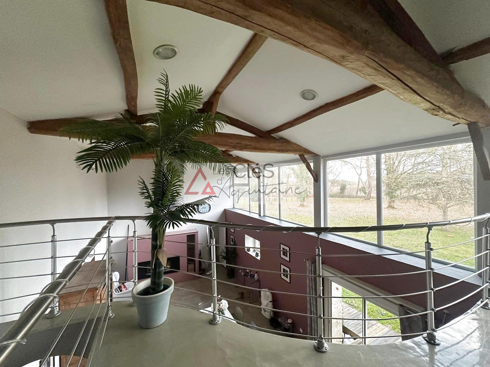 De beaux volumes s'offrent à vous avec de belles pièces de vies, dont son vaste séjour très lumineux et son plafond cathédrale de 49 m2 environ, ayant conservé ses anciennes poutres, ouvert sur une mezzanine dominant la pièce, on y respire... Donnant sur une cuisine équipée indépendante contemporaine très fonctionnelle. Complété d'un salon chaleureux, confortable avec son insert bois. Même son entrée avec sa cheminée, son placard encastré, en font un petit boudoir. Ses 4 chambres confortables sont ouvertes sur la nature environnante, dont une suite parentale avec dressing et salle d'eau à l'étage, en font un lieu idéal pour une famille et ou recevoir ses amis. Une salle de sport, donnant sur véranda avec jacuzzi, à proximité de la piscine (liner à changer), complètent ce bien.