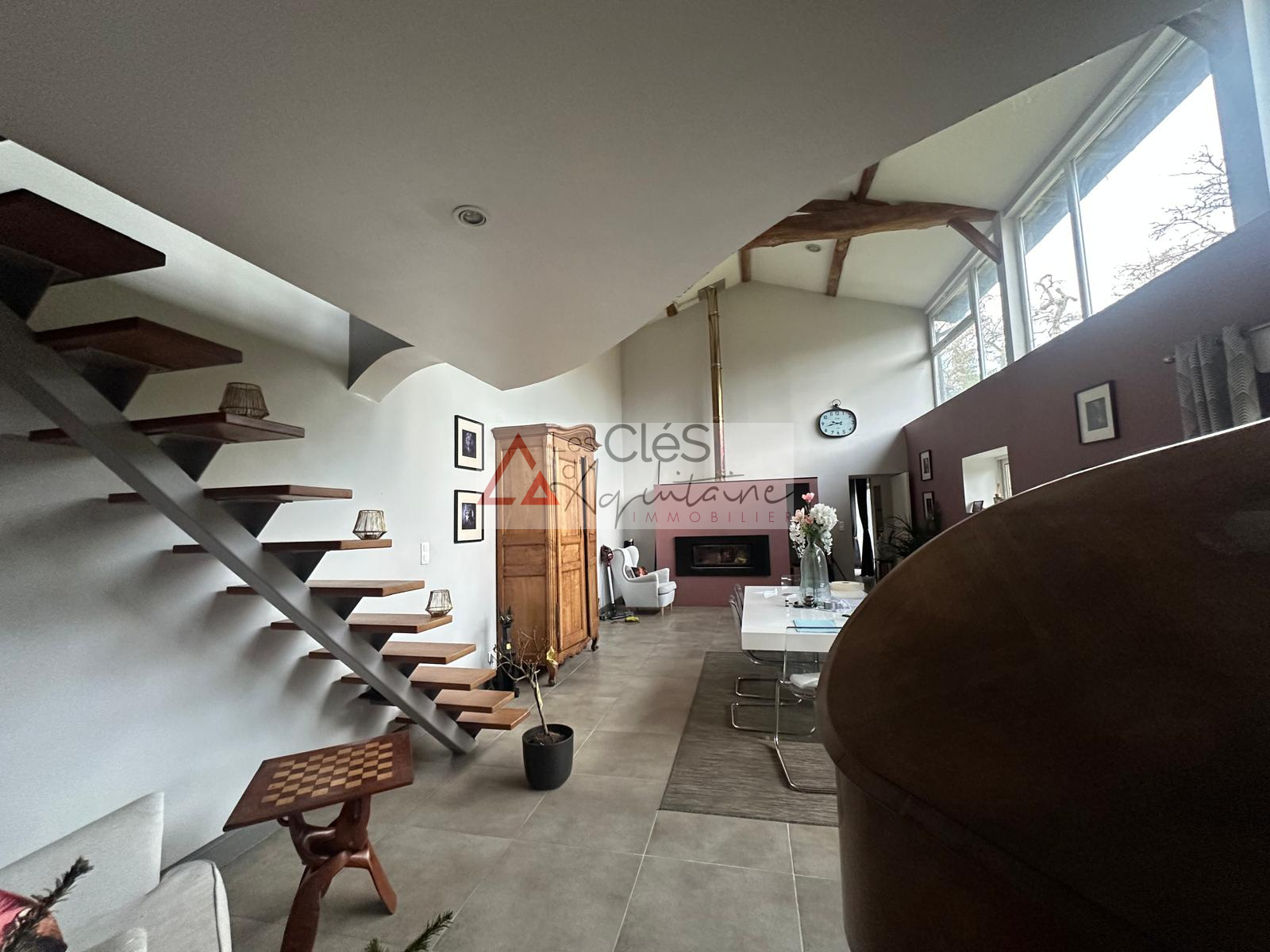 Belle maison en pierre de type longère, baignée de lumière, rénovée avec soin dans un esprit contemporain, avec tout le confort moderne, économe en énergie, dans son parc arboré de près de 3ha, à 50 minutes de Bordeaux centre..