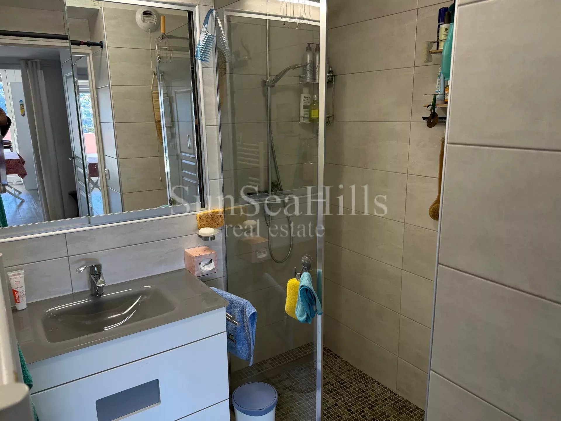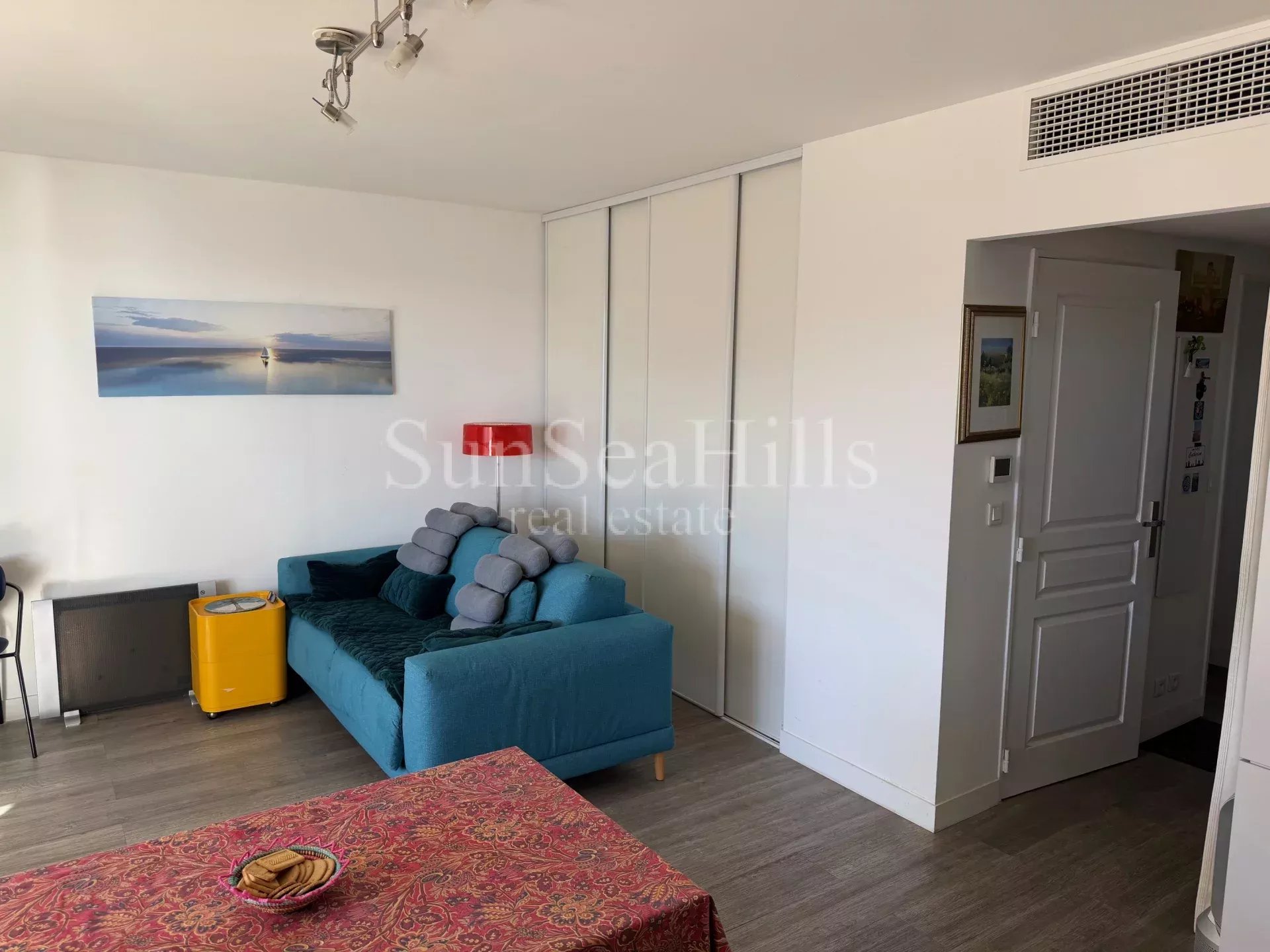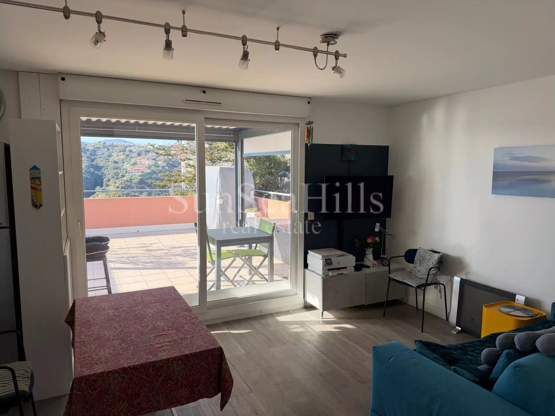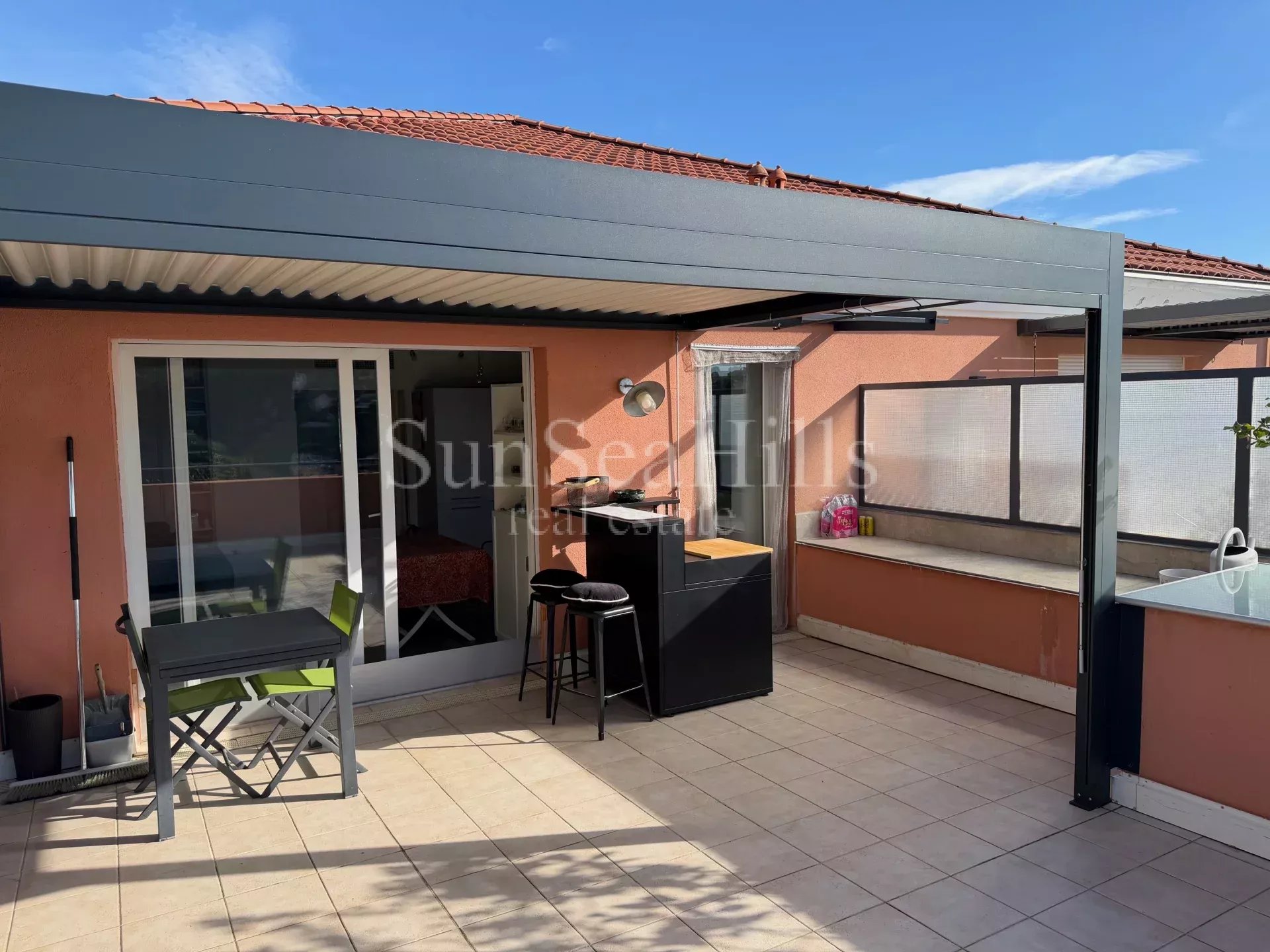 A 10 minutes du Centre ville, dans une résidence standing sécurisée de 2006 avec parc et piscine, beau 2 pièces d'angle 49m² en DERNIER étage avec terrasse Ouest 31m². Vue dégagée sans vis-à-vis, aperçu mer. Calme absolu. Entrée, séjour 28m² avec cuisine ouverte, chambre sur balcon, salle de douche avec douche à l'italienne, WC séparés avec lave-mains. Nombreux placards. Belle prestations. Climatisation, double vitrage, volets roulants électriques. Cave et garage sous-sol. Les informations sur les risques auxquels ce bien est exposé sont disponibles sur le site Géorisques : georisques.gouv.fr
