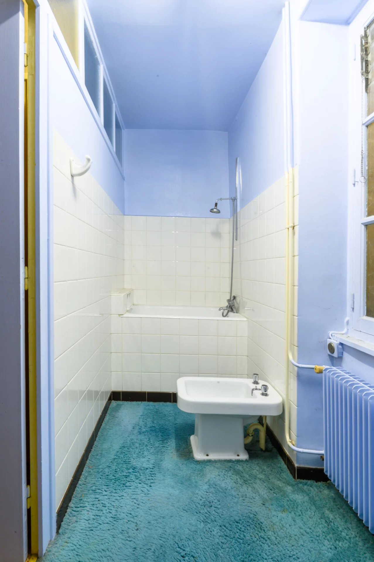 Grande pièce de vie de 69 m² avec espace salle de bains, offrant un vaste plateau à aménager selon vos envies.