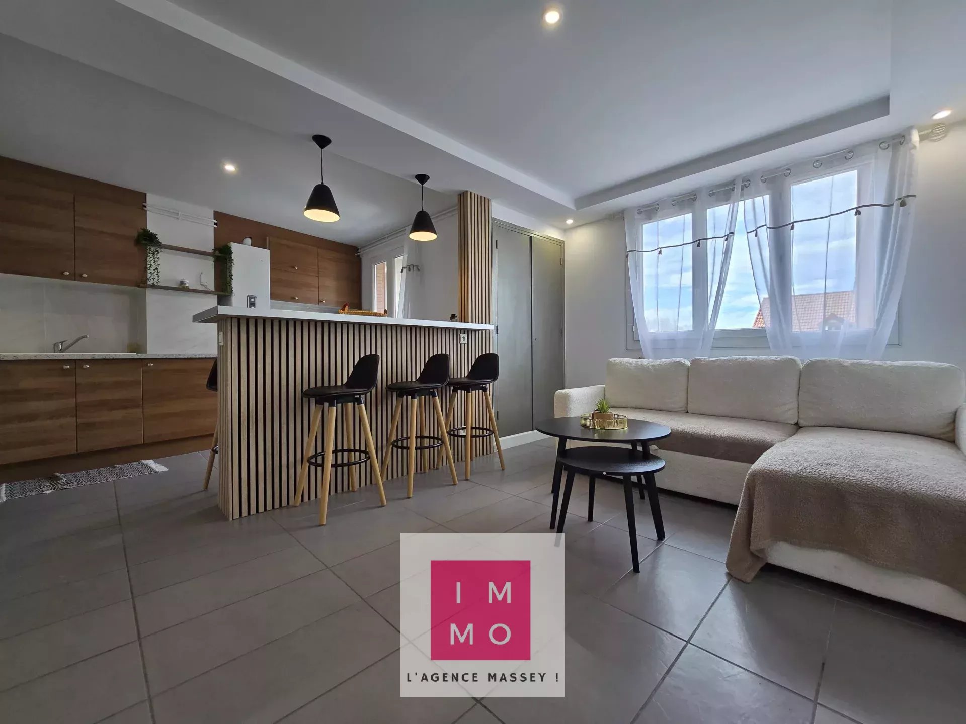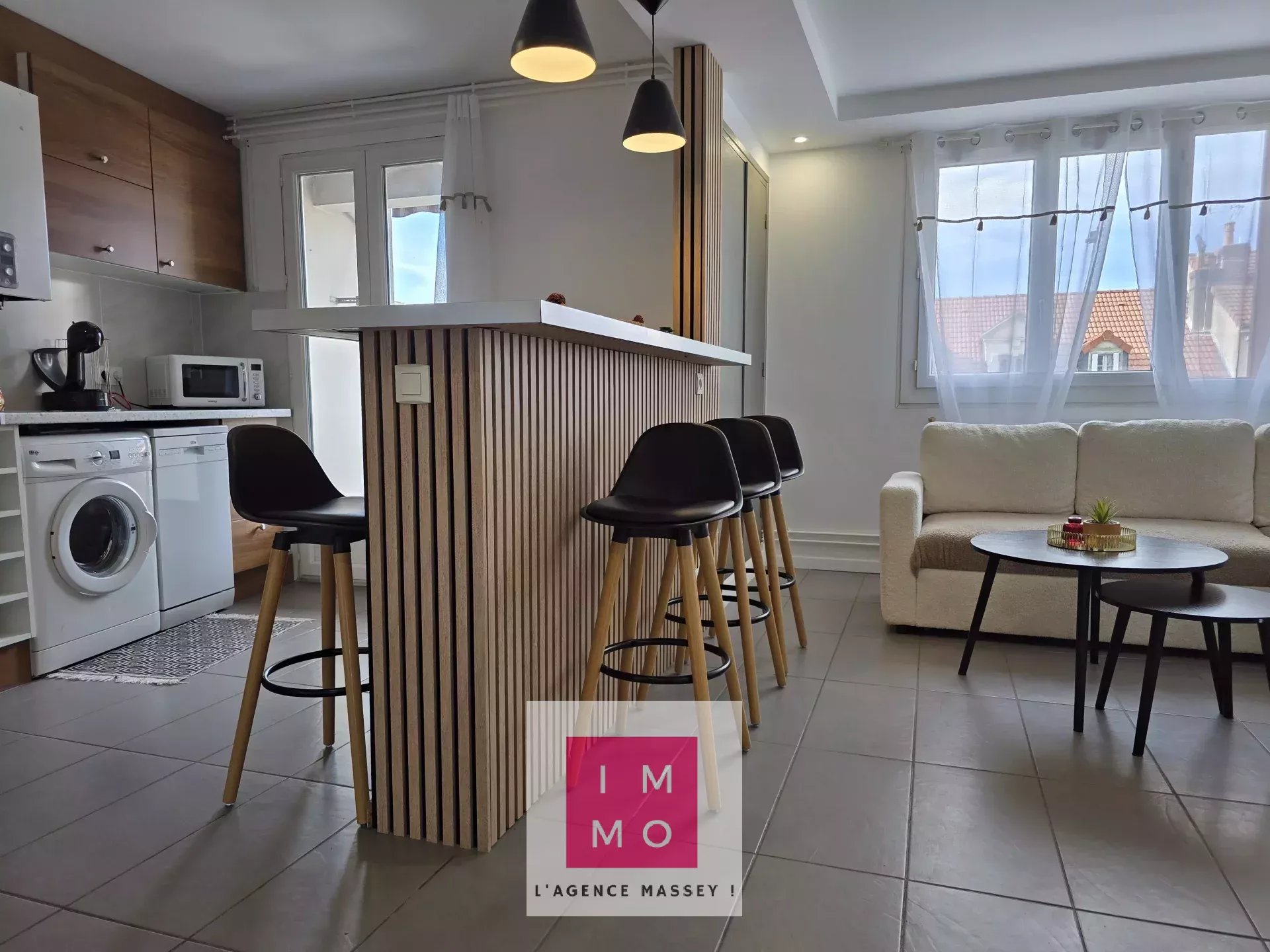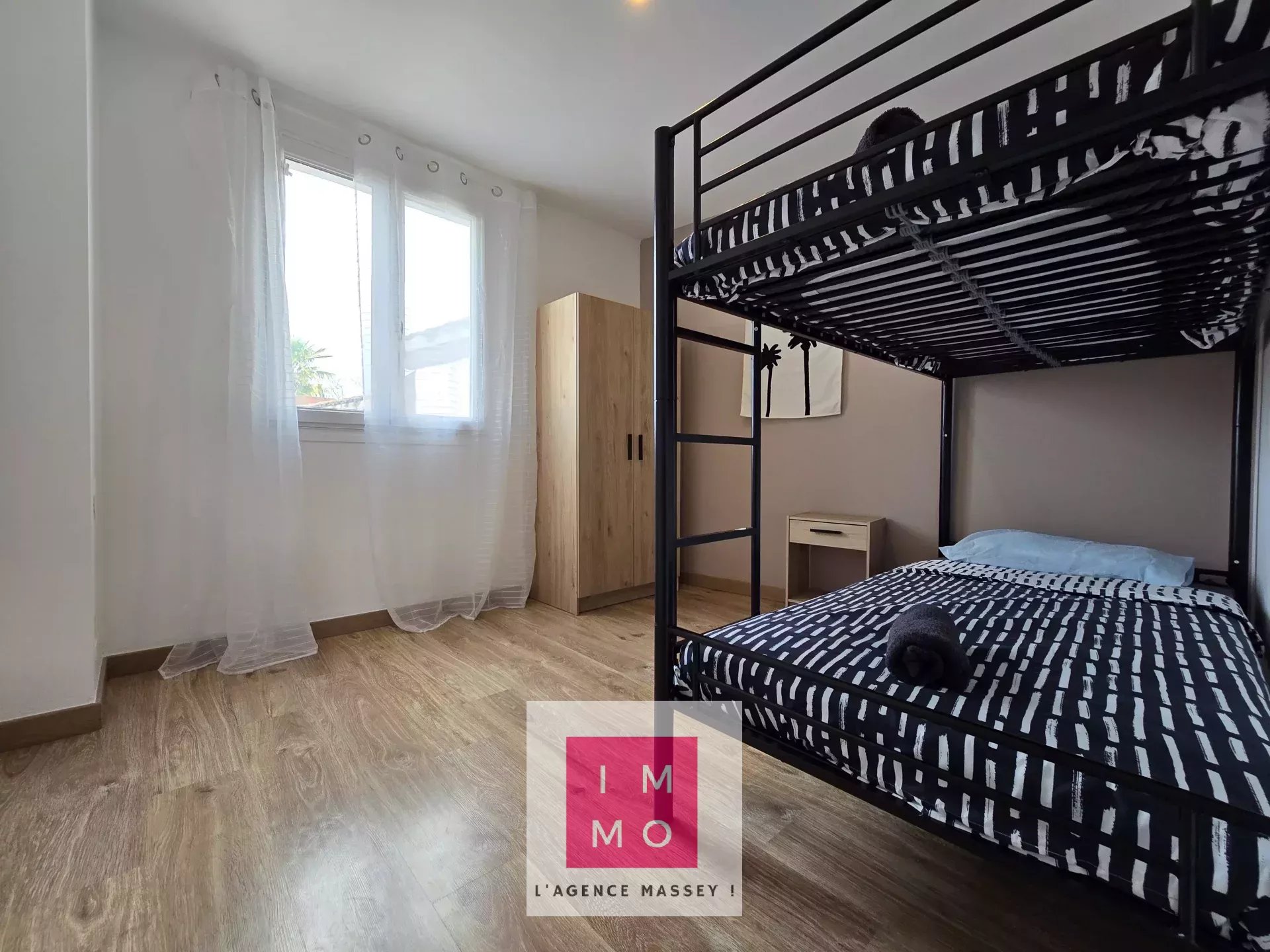Le salon, baigné de lumière grâce à ses larges ouvertures, offre une atmosphère cosy et accueillante, idéale pour se détendre. L’ensemble s’ouvre sur une agréable terrasse, véritable prolongement de l’espace de vie, parfaite pour vos petits-déjeuners au soleil ou vos soirées d’été.