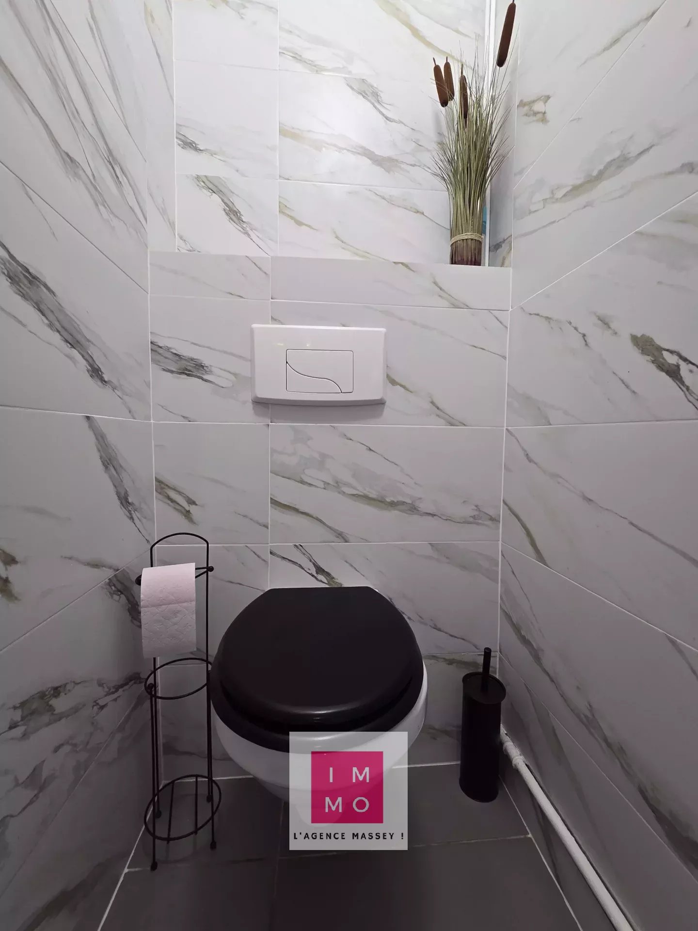 Côté nuit, l’appartement dispose de deux chambres confortables, dont une avec placard intégré, ainsi qu’une salle d’eau moderne et des WC séparés, apportant un confort au quotidien.