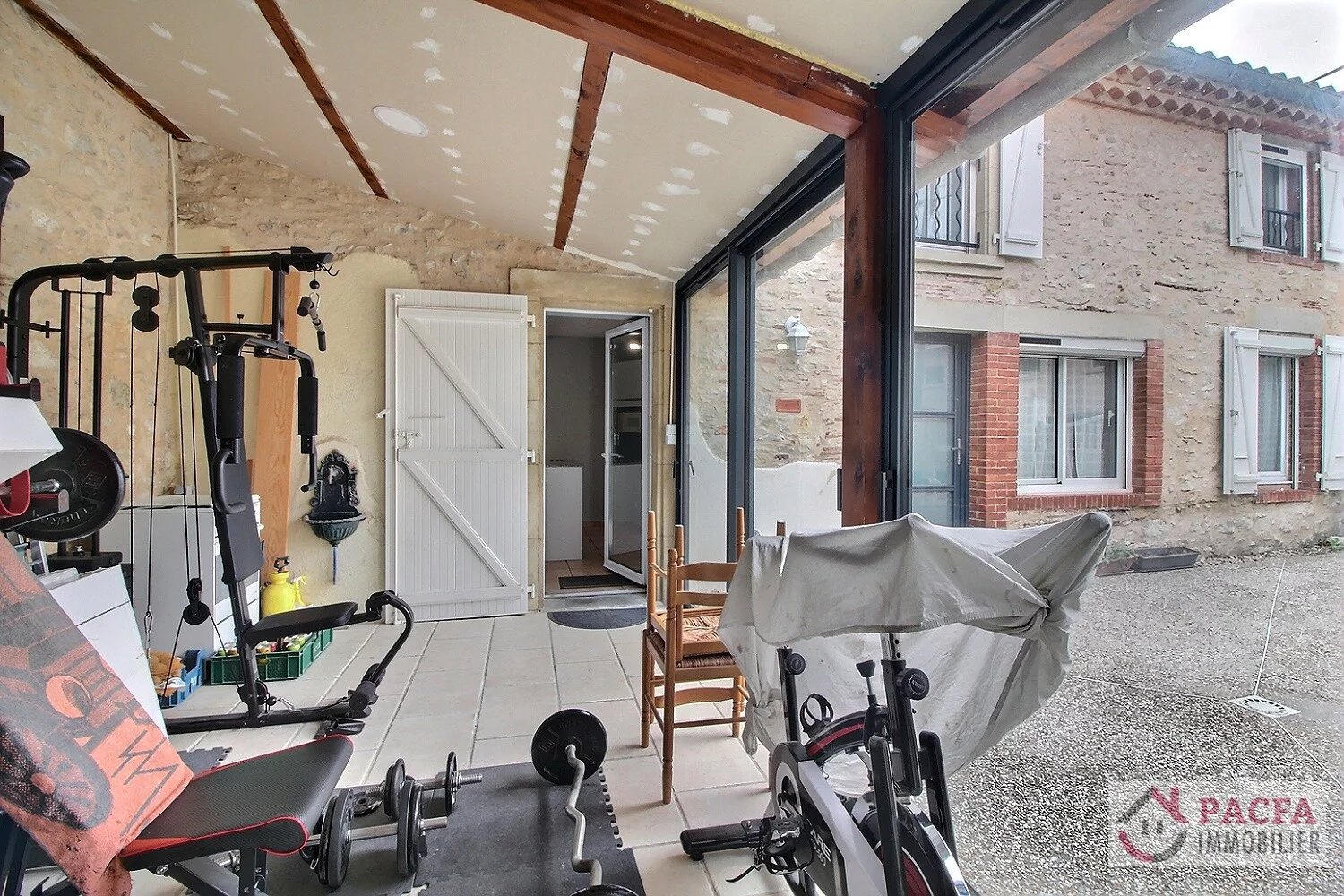 Un espace véranda 16 m², aujourd’hui non chauffé, offre un potentiel intéressant. Il peut aisément être intégré à la surface habitable et aménagé en salle à manger ou en pièce de réception supplémentaire.