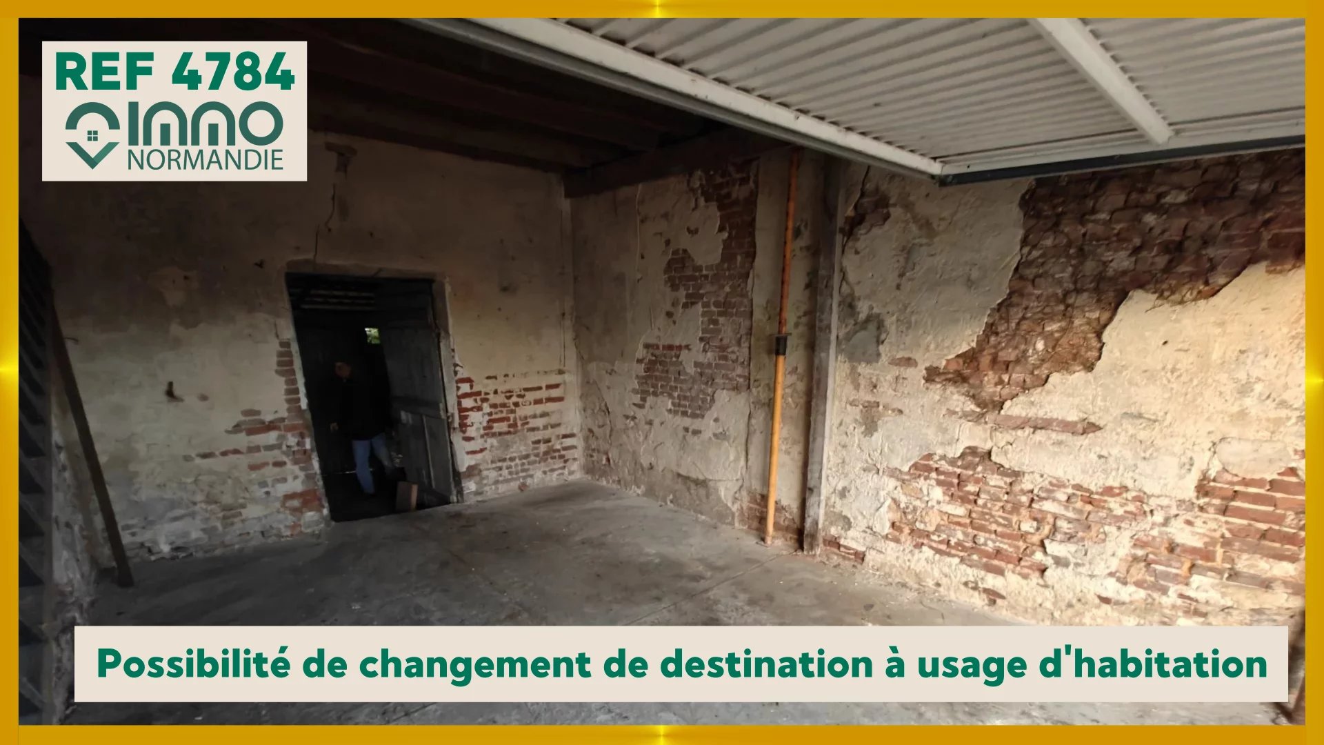 Bâtiment à usage de garage avec atelier et charretterie attenant. Terrain. Possibilité de changement de destination à usage d'habitation.