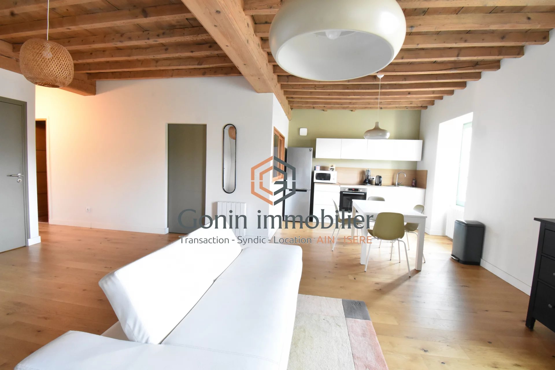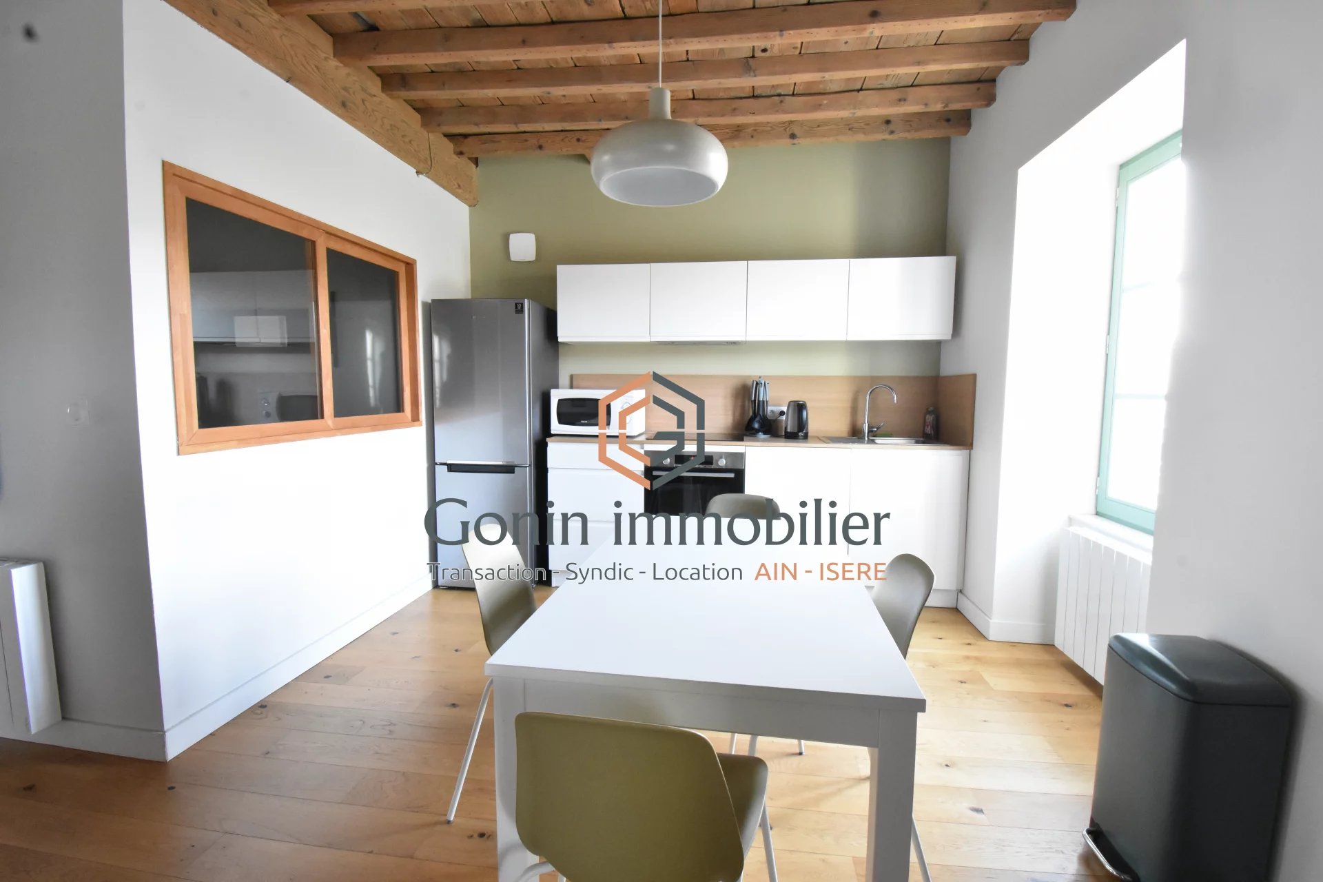 Superbe appartement entièrement rénové, à louer meublé, dans le centre village de Sault-Brénaz, composé d’un séjour avec cuisine ouverte entièrement équipée (lave-vaisselle, four, micro-ondes, plaques à induction, réfrigérateur), de 2 chambres, d’un bureau, d'une salle de bains ainsi que d'1 WC séparé.