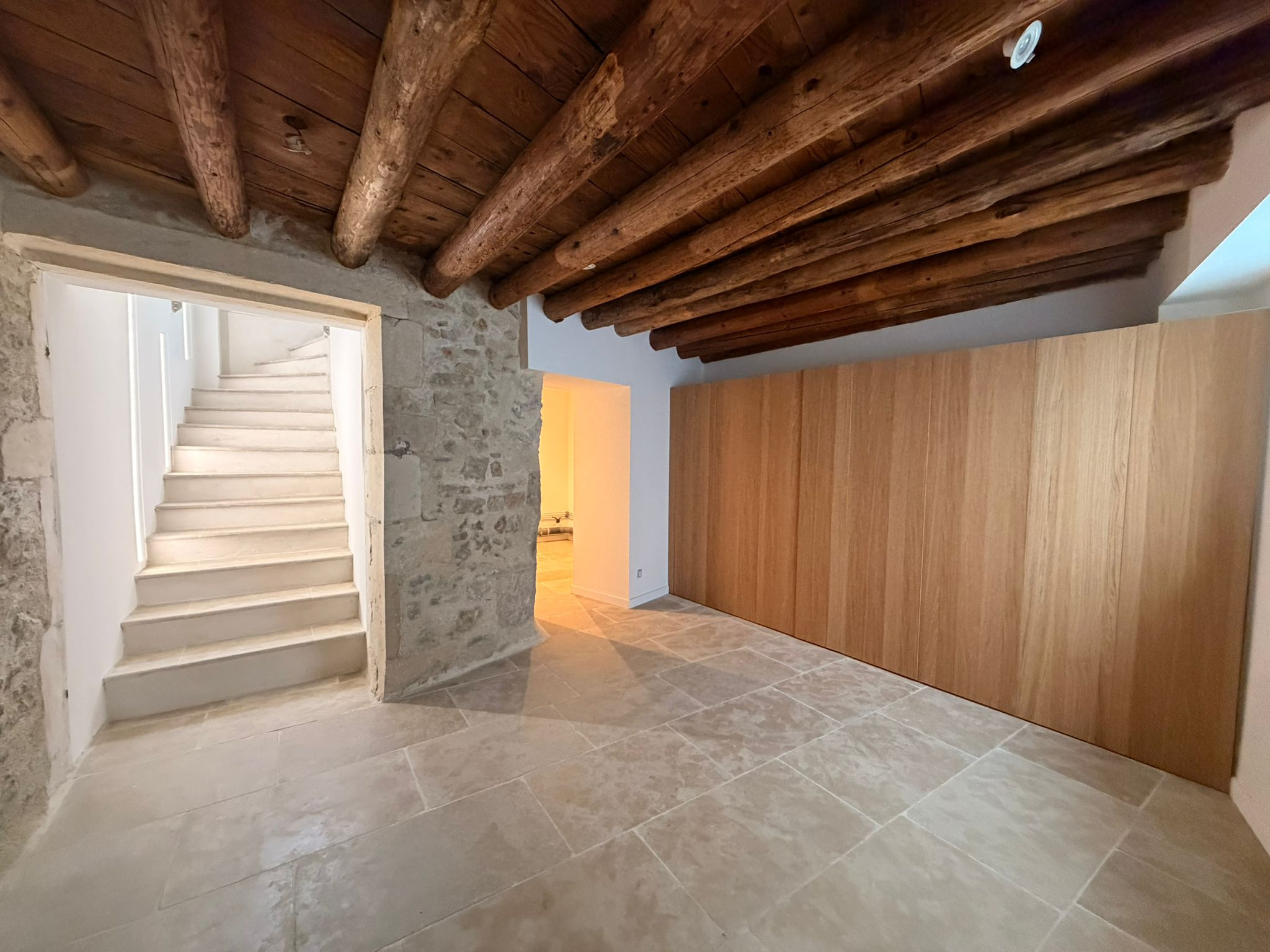 Côté prestations, la maison dispose d'une climatisation réversible, de menuiseries aluminium double vitrage, de volets centralisés pilotables via smartphone ainsi que de matériaux nobles tels que la pierre, le bois, des voûtes et des poutres apparentes, le tout sublimé par une belle hauteur sous plafond.
