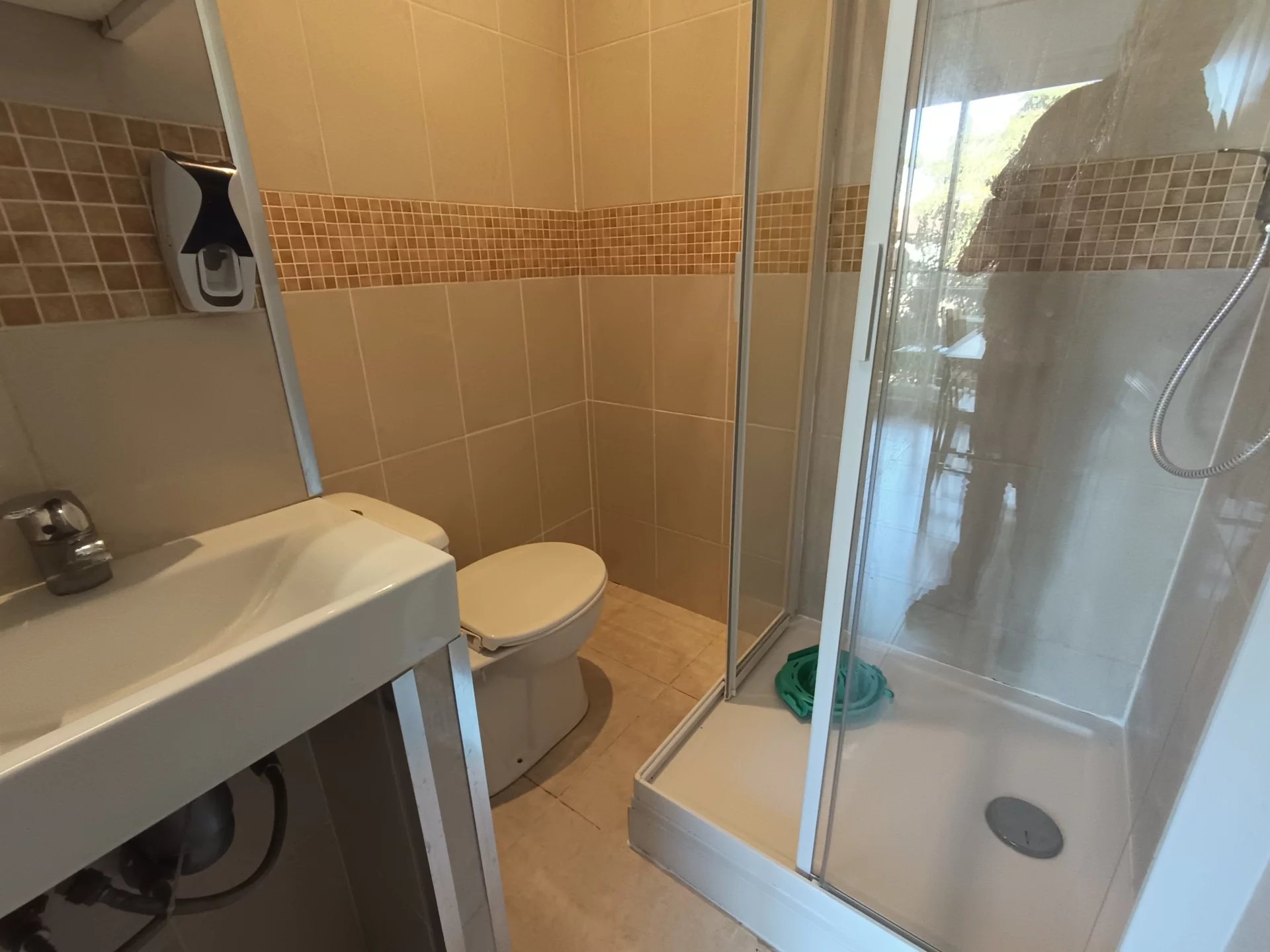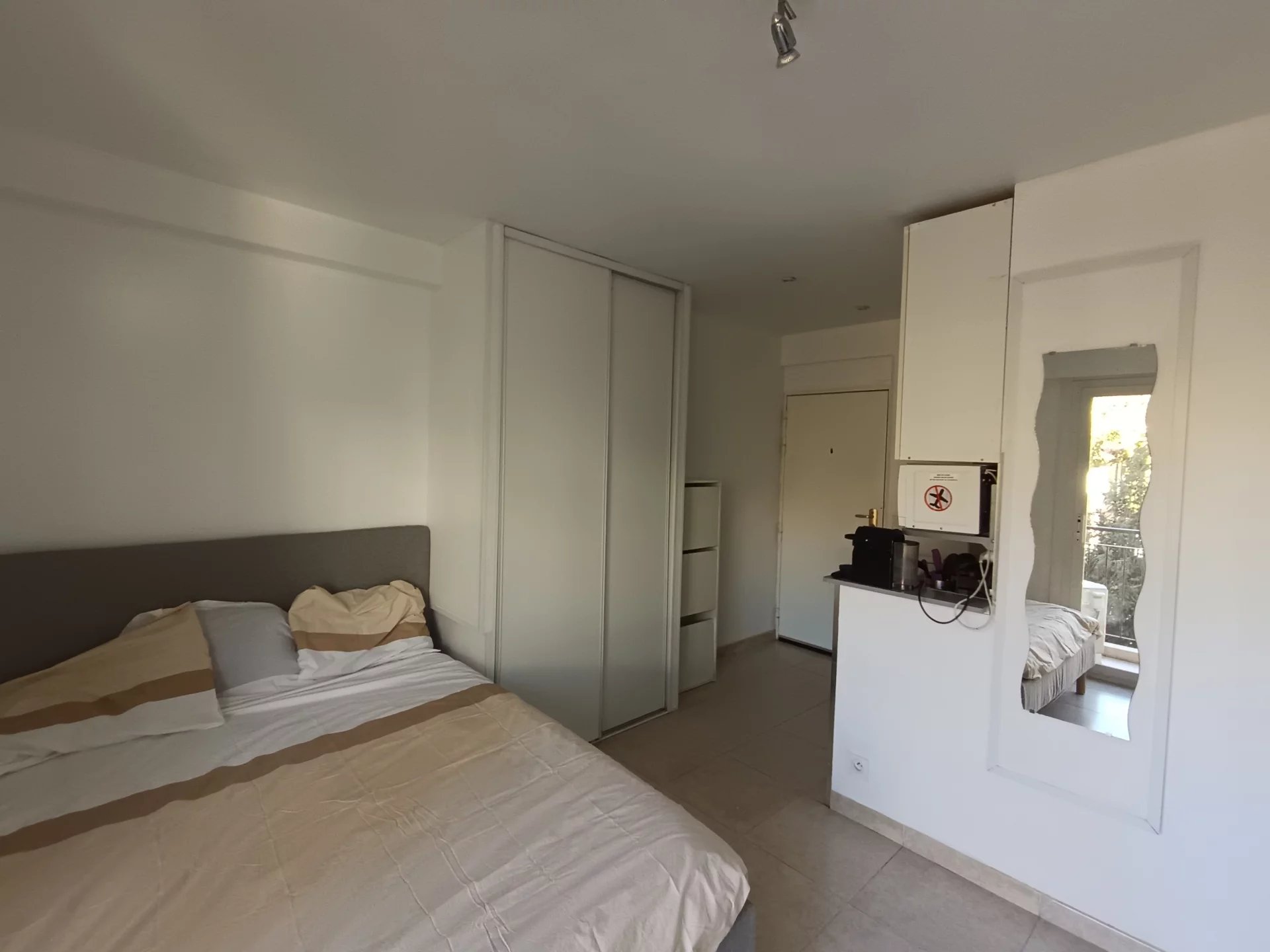 il est composé d'une piece avec une kitchenette aménagée et équipée, d'un placard. Une salle d'eau avec WC est refaite et fonctionnelle. Il est climatisé. Le balcon permet de mettre 2 chaises et une petite table.