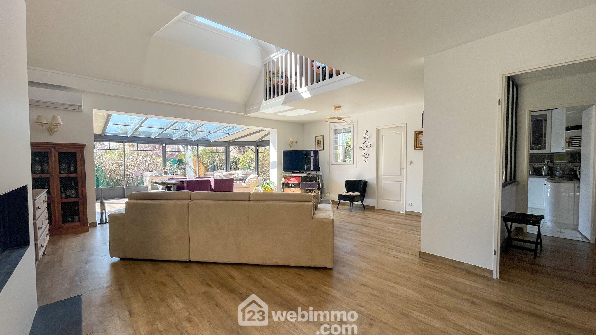 Votre agence 123webimmo vous présente : Cette propriété baignée de lumière de 219 m² au sol, allie confort, volumes et prestations de qualité. 5 chambres. Superbe maison de 185 m² habitables en excellent état, située dans un environnement verdoyant, calme. et recherché Elle offre au rez-de-chaussée : une pièce de vie de 66 m² comprenant un double séjour (40 m²) sur mezzanine et une cheminée insert prolongé par une magnifique véranda (26 m²), une cuisine équipée attenante à une buanderie et un cellier, donnant tous deux sur une terrasse exposée sud-ouest, une chambre avec salle d'eau et un wc indépendant. À l'étage, la mezzanine de 17 m² dessert trois chambres dont une suite parentale avec dressing, salle d'eau (baignoire et douche), une salle de bain supplémentaire et un wc indépendant. Les combles aménagés vous offre une cinquième chambre et une pièce supplémentaire lumineuse pouvant faire office de salle de jeu pour les enfants, salle de sport ou d'un salon pour se détendre en famille. Jardin soigneusement entretenu pour profiter des beaux jours. Ce bien est complété par un double garage et deux places de parking en extérieur. Cette maison est parfaite pour une famille à la recherche de verdure, confort et tranquillité. COUP DE COEUR ASSURÉ ! . Proche de toutes les commodités : commerces, écoles, collège, lycée, transports (RER A) grands axes N19 et A86. Les informations sur les risques auxquels ce bien est exposé sont disponibles sur le site du gouvernement : https://www.georisques.gouv.fr.Informations LOI ALUR : Honoraires charge vendeur. (gedeon_53674_30938284)