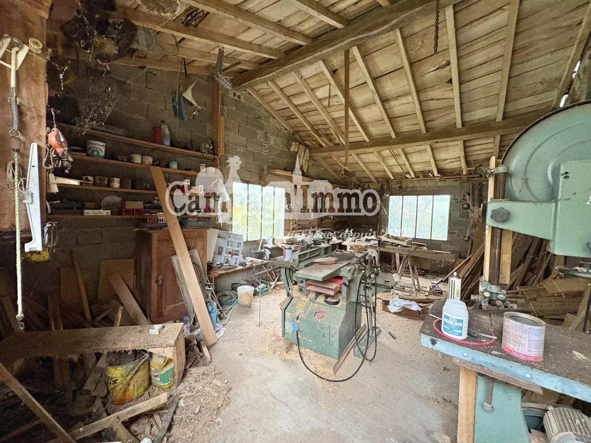 La maison dispose en plus de nombreuses dépendances, notamment : Un abri attenant, surmonté d’une pièce en dépendance, avec accès direct au grenier de l'habitation et un atelier avec accès à l’étage du garage, ainsi que plusieurs pièces annexes (ancienne porcherie, etc.)