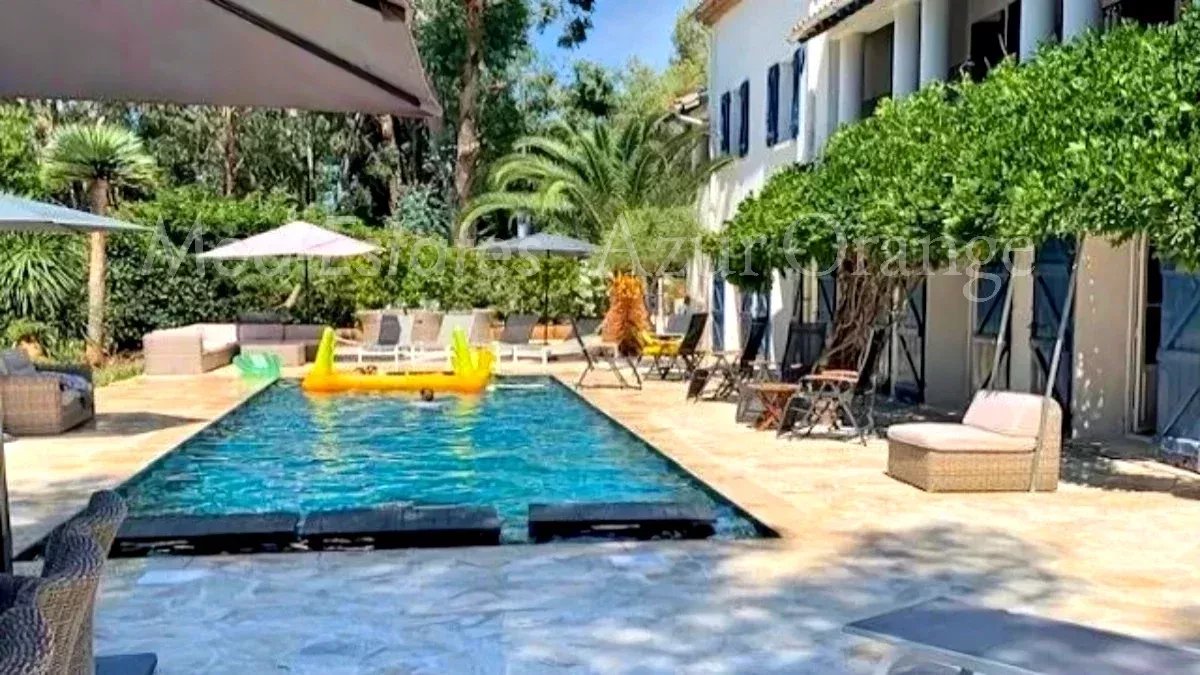 Bastide unique avec une vue imprenable sur la mer, directement en face de la plage de Gigaro. Exceptionnel ! Authentique bastide datant d'environ 1900 avec une surface habitable totale de +/- 330 m², sur un terrain plat de 2 325 m² et un jardin avec des arbres matures et de belles fleurs méditerranéennes. La bastide offre plusieurs unités de vie, chacune avec une belle vue sur la mer et une orientation idéale vers le sud ! Une piscine chauffée de 12m x 4m, une belle terrasse tout autour, plusieurs endroits pour bénéficier de la beauté de l'endroit. Environ 6 places de parking sur le site. Plusieurs magasins et notamment le célèbre hôtel & restaurant 'Lily of the Valley' de Philippe Starck se trouvent à environ 5 minutes à pied. La plage se trouve juste à vos pieds ! Unique. A voir!