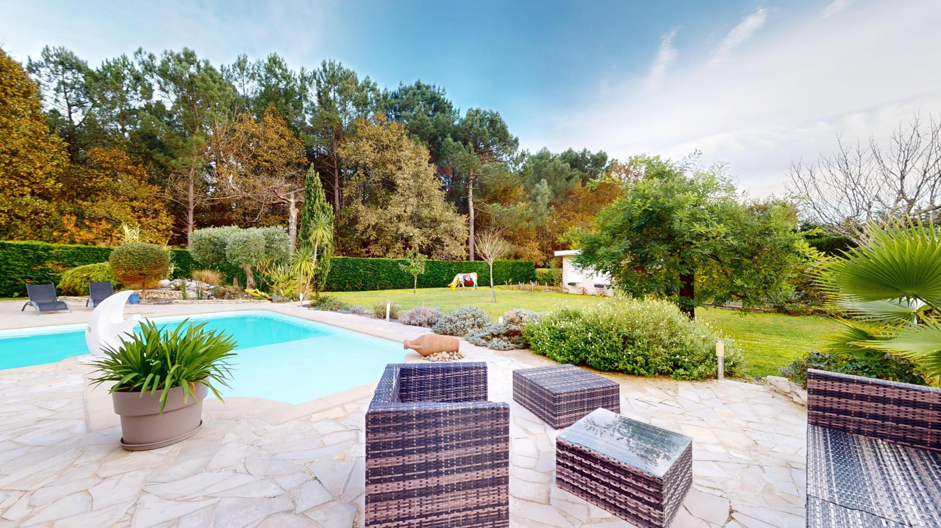 VISITE VIRTUELLE SUR DEMANDEDans un environnement paisible et sans vis-à-vis, découvrez cette superbe maison de 205 m², construite en 1998 sur un terrain de 1999 m², alliant élégance, modernité et confort. La maison a été pensée pour profiter pleinement de l'extérieur : les pièces s'ouvrent vers une grande terrasse de 103 m² et une splendide piscine, parfaite pour vos moments de détente ou vos réceptions en famille et entre amis. L'espace de vie principal, véritable coeur de la maison, impressionne par ses volumes généreux et sa hauteur sous plafond de 3 mètres, qui baignent la pièce de lumière naturelle tout au long de la journée. Malgré ses dimensions, cette pièce reste chaleureuse grâce à un insert bois, complétant le système de chauffage au sol et sa PAC réversible gainable. La maison dispose de 4 chambres : Une suite parentale avec salle de bain / douche privative et dresssing attenant Deux chambres avec leurs propres salles d'eau. Une quatrième chambre actuellement aménagée en bureau. Avec une cuisine ouvrant sur la terrasse, une grande buanderie, un espace technique, un cellier, un atelier et un très grand garage, cette maison répondra à tous vos besoins. Le magnifique jardin paysager est également agrémenté d'un cabanon et d'une grande cuisine d'été charmante et fonctionnelle. Des prestations modernes et de qualité viennent compléter le tout : domotique, climatisation, fibre optique et chauffage écologique. Exposée plein sud et offrant une vue dégagée, cette maison lumineuse en bordure de forêt est une véritable invitation à profiter d'un cadre de vie unique et paisible à deux minutes du centre-ville de Martignas. Une opportunité rare, à ne pas manquer ! Pour plus d'informations ou organiser une visite, contactez-nous rapidement. Les informations sur les risques auxquels ce bien est exposé sont disponibles sur le site Géorisques : www.georisques.gouv.frPrix de vente : 810 000 ¤Honoraires charge vendeurContactez votre conseiller SAFTI : Pascale SIMONPOLI, Tél. : 07 64 18 15 90, E-mail : pascale.simonpoli@safti.fr - EI - Agent commercial immatriculé au RSAC de BORDEAUX sous le numéro 878 948 389.Informations LOI ALUR : Honoraires charge vendeur. (gedeon_26118_32740447)