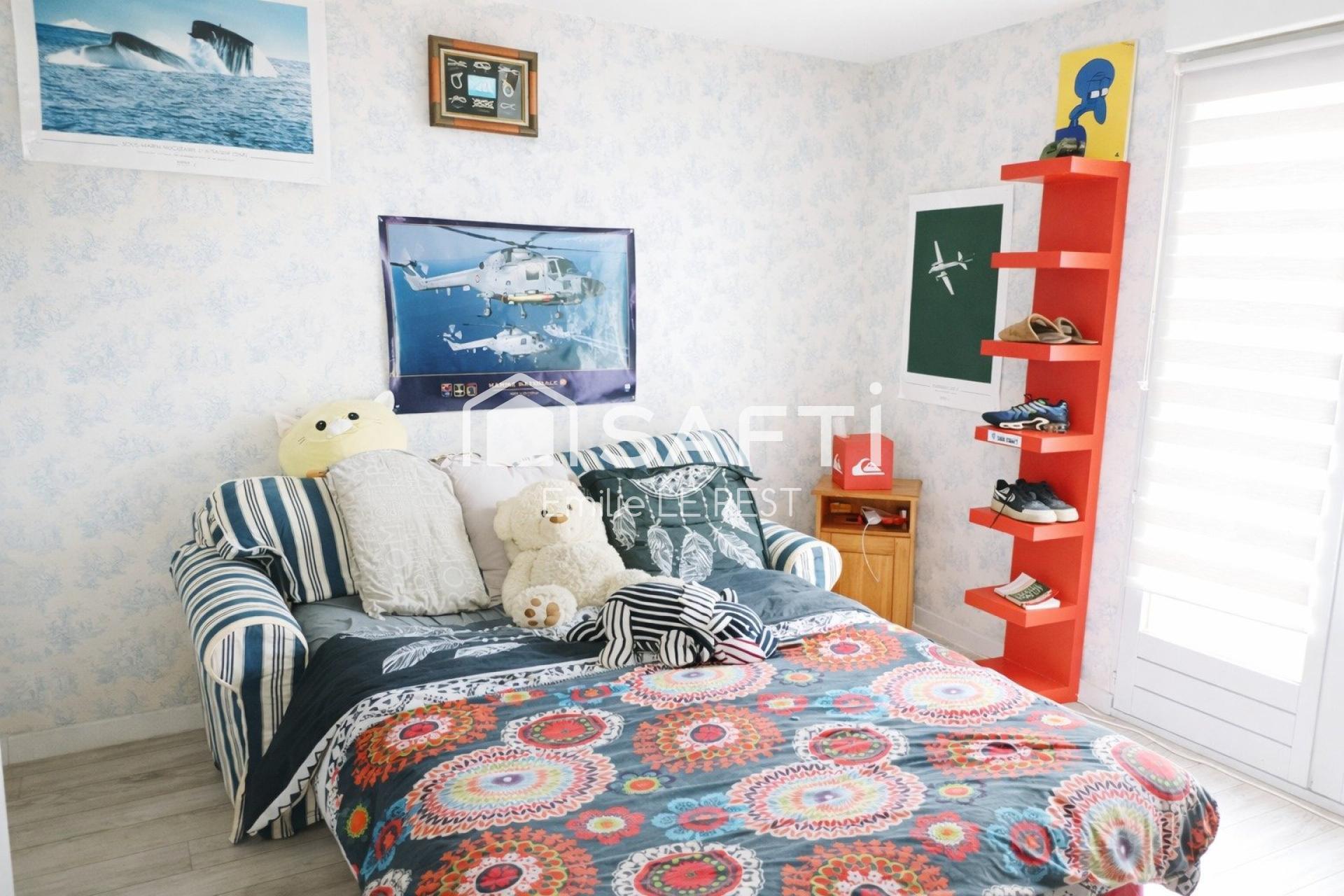 Nichée au fond d'une impasse, dans un quartier résidentiel particulièrement calme, cette maison offre un cadre de vie privilégié à seulement 1 km des plages. Implantée sur un magnifique terrain de plus de 1 500 m², sans aucun vis-à-vis, cette propriété séduit immédiatement par son jardin spacieux et verdoyant, véritable havre de paix. La maison propose une surface habitable d'environ 142 m². Dès l'entrée, vous découvrirez un vaste salon-séjour de 38 m², baigné de lumière, agrémenté d'une belle cheminée qui apporte un confort chaleureux et convivial. Cet espace de vie s'ouvre directement sur une terrasse, idéale pour profiter pleinement du jardin aux beaux jours. La cuisine, indépendante et équipée, est récente et fonctionnelle. La vie de plain-pied est tout à fait possible grâce à une chambre située au rez-de-chaussée ainsi qu'une salle de bain. À l'étage, une agréable mezzanine dessert trois chambres, dont une suite parentale avec dressing, ainsi qu'une salle d'eau. La maison dispose de plusieurs annexes, dont deux garages, apportant des solutions de rangement et de stationnement appréciables. Un bien rare par sa situation, ses volumes et son environnement, à découvrir sans tarder. N'hésitez pas à me contacter pour obtenir davantage d'informations sur ce bien et organiser une visite. Les informations sur les risques auxquels ce bien est exposé sont disponibles sur le site Géorisques : www.georisques.gouv.frPrix de vente : 396 000 ¤Honoraires charge vendeurContactez votre conseiller SAFTI : Emilie LE REST, Tél. : 06 20 52 31 58, E-mail : emilie.lerest@safti.fr - EI - Agent commercial immatriculé au RSAC de Quimper sous le numéro 947 929 857.Informations LOI ALUR : Honoraires charge vendeur. (gedeon_26118_32752712)