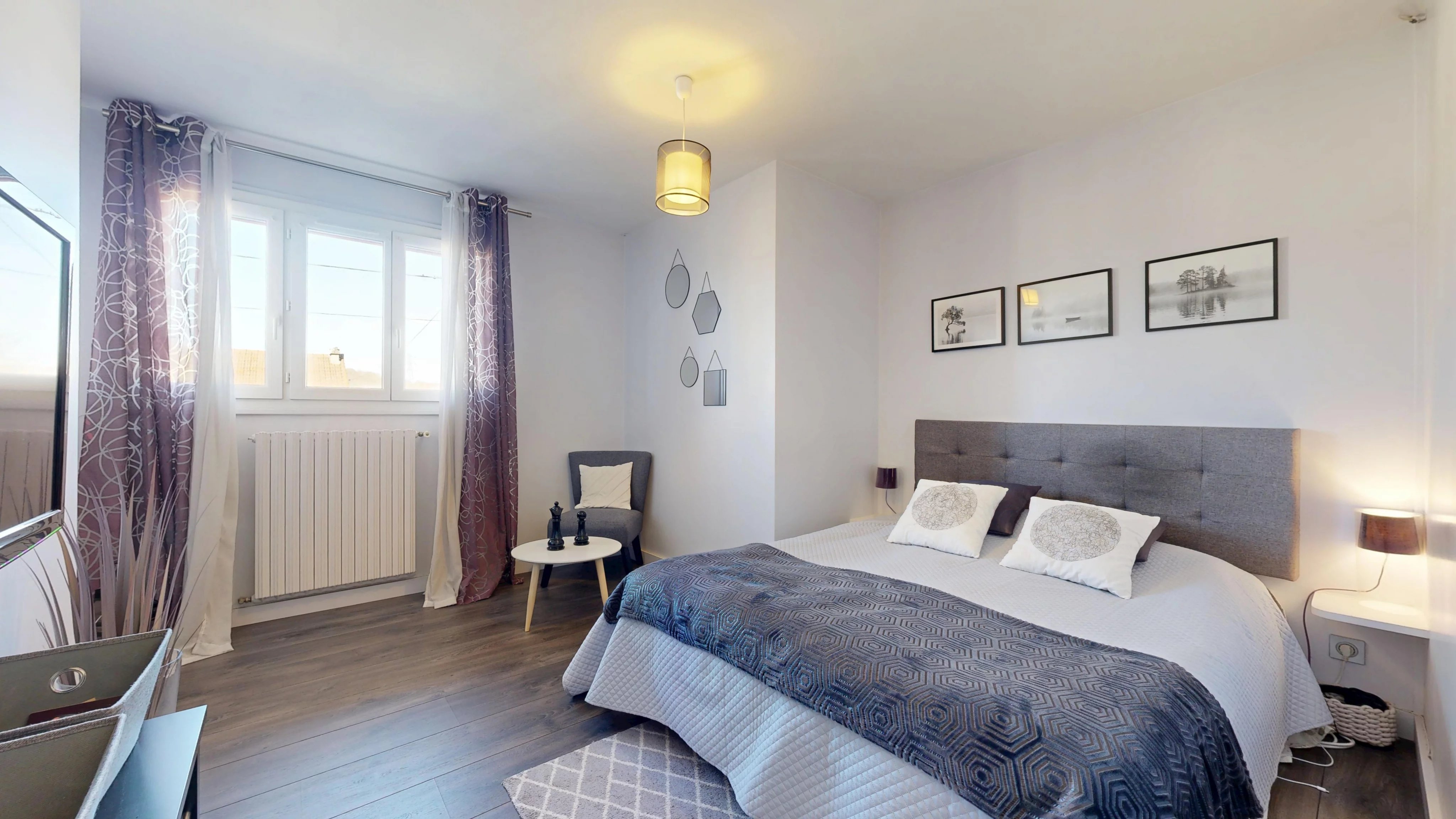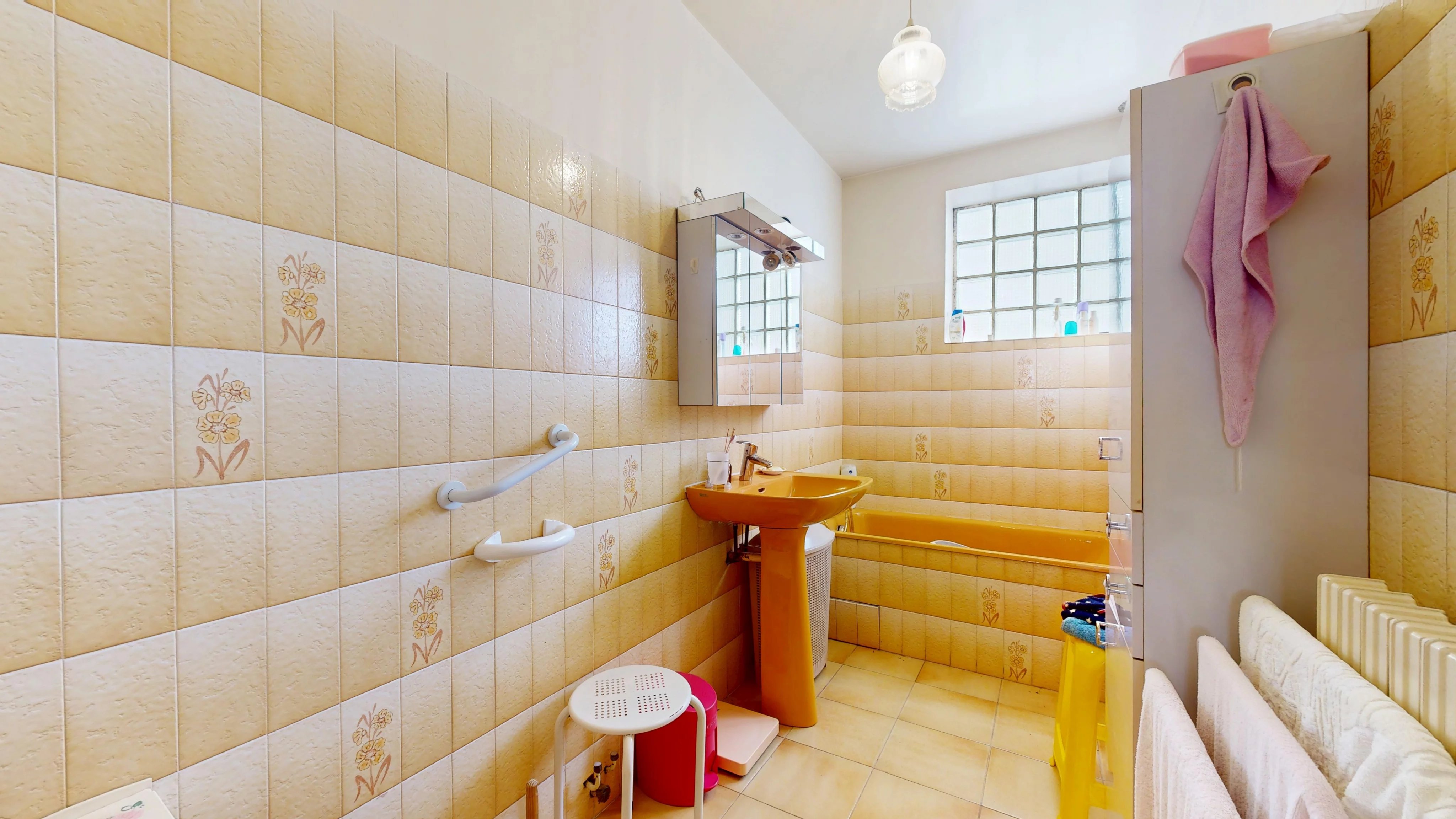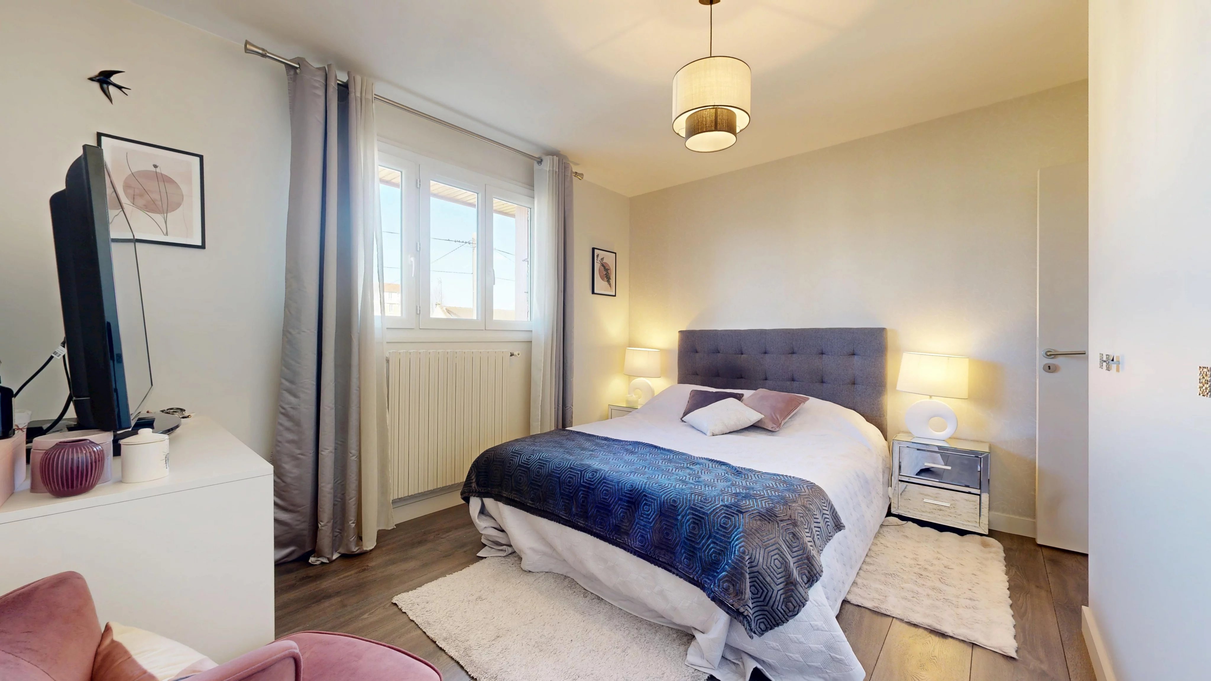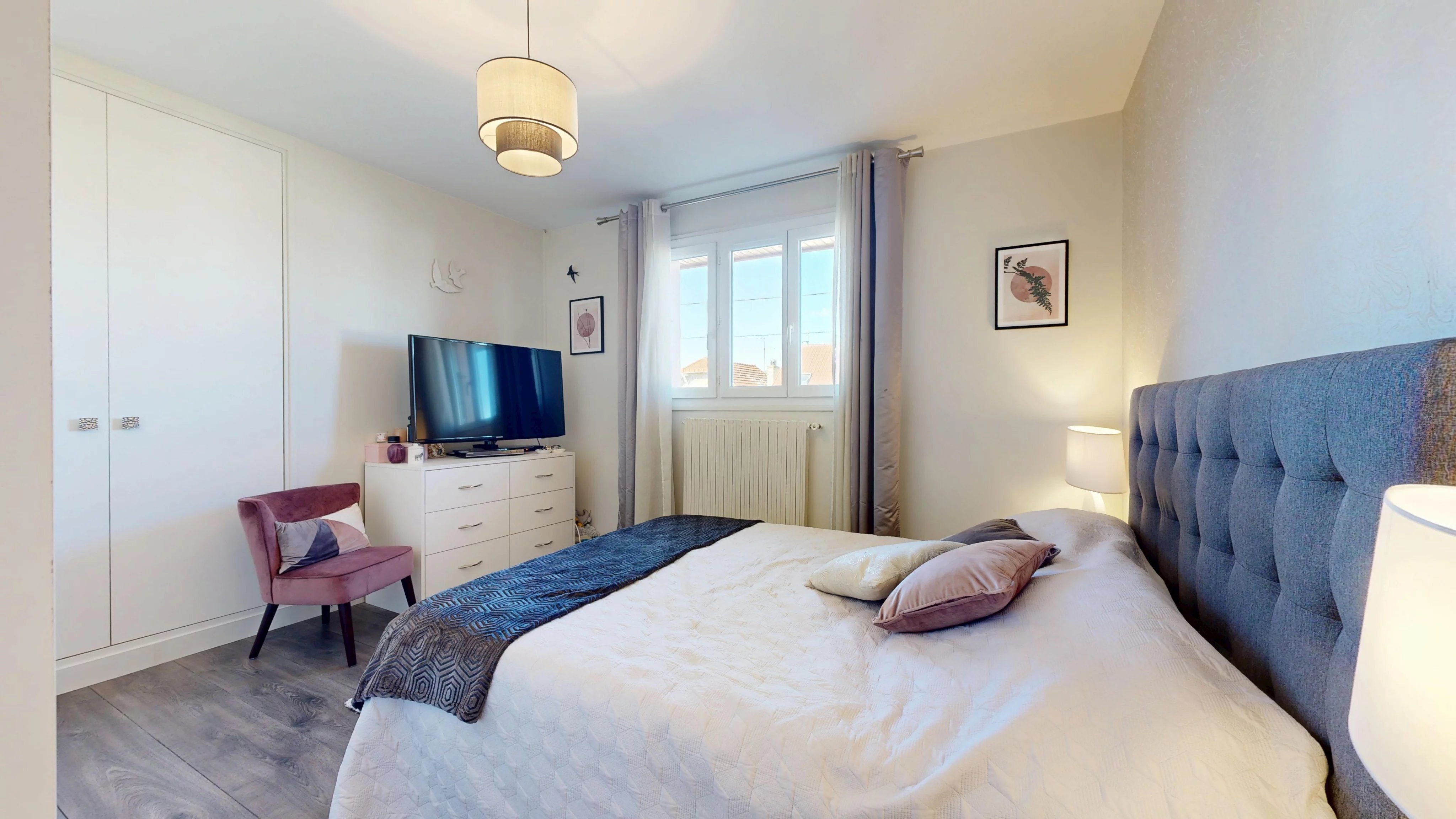 Au dernier niveau, vous trouverez deux chambres spacieuses avec rangements, une salle de bains avec WC (douche, baignoire et coin buanderie) ainsi qu’un bureau pouvant être aménagé en chambre d’enfant.