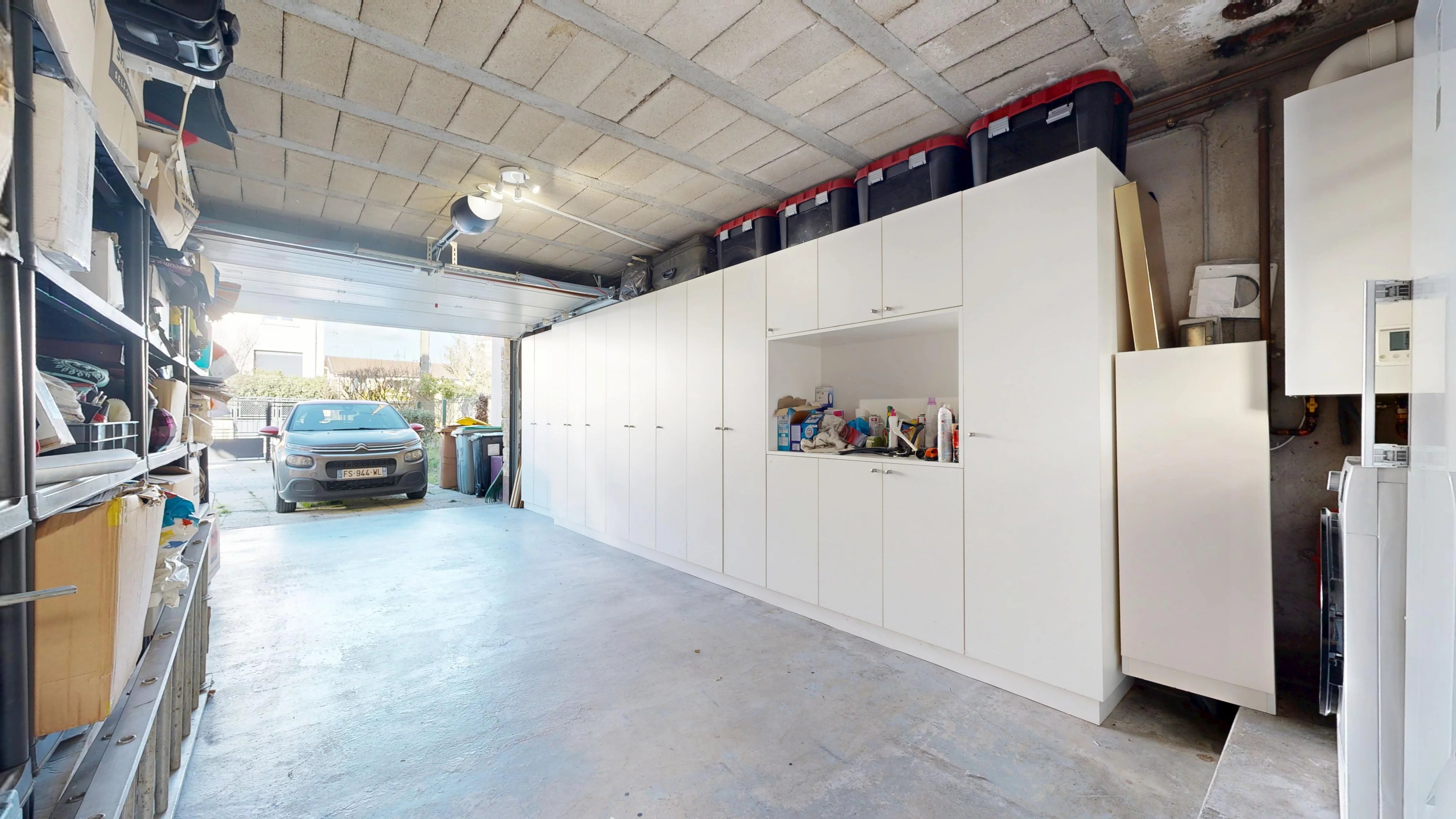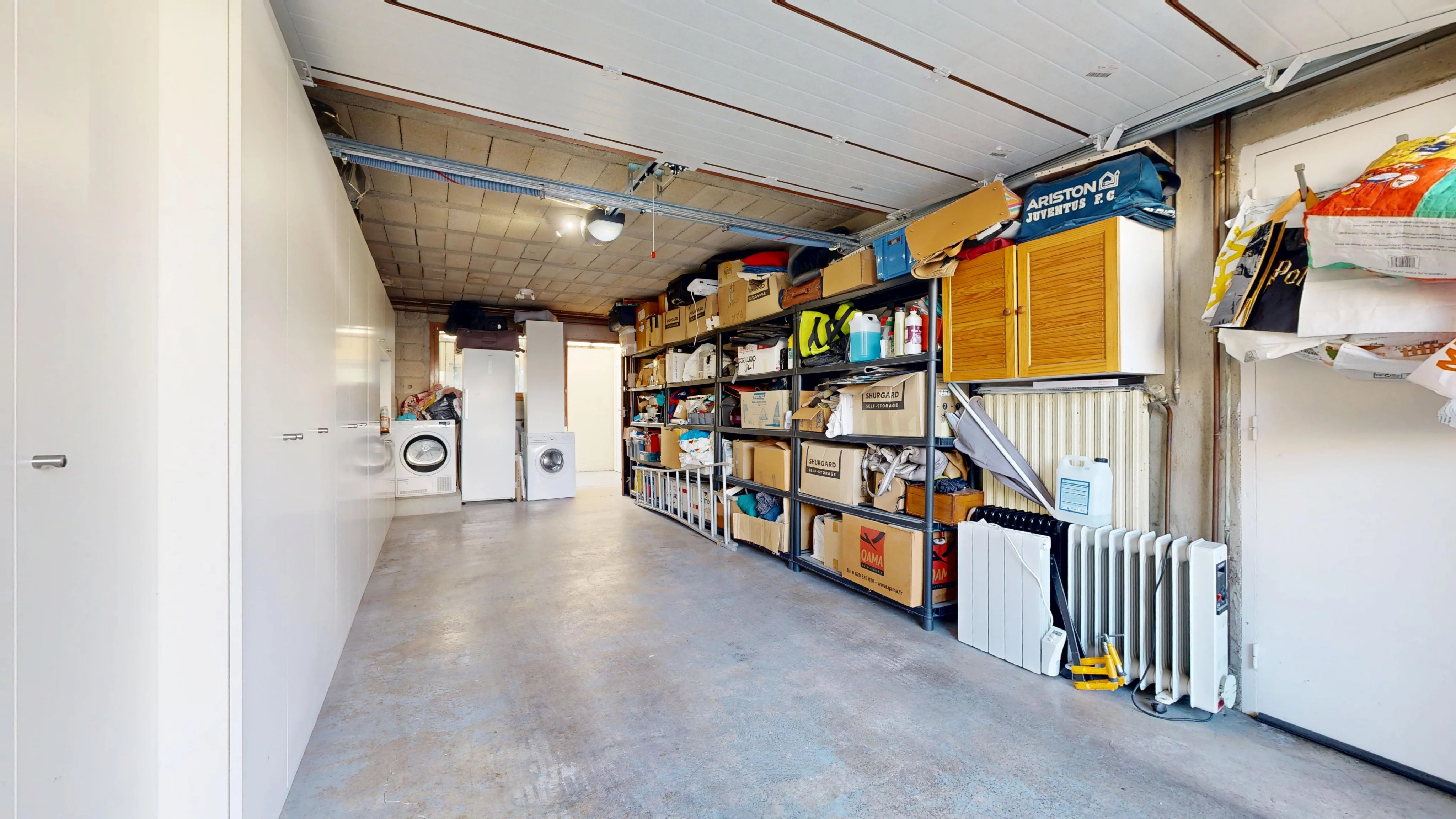 Sur ce niveau, on retrouve également un garage avec de nombreux rangements ainsi qu’une pièce de stockage avec un point d’eau offrant de multiples possibilités.