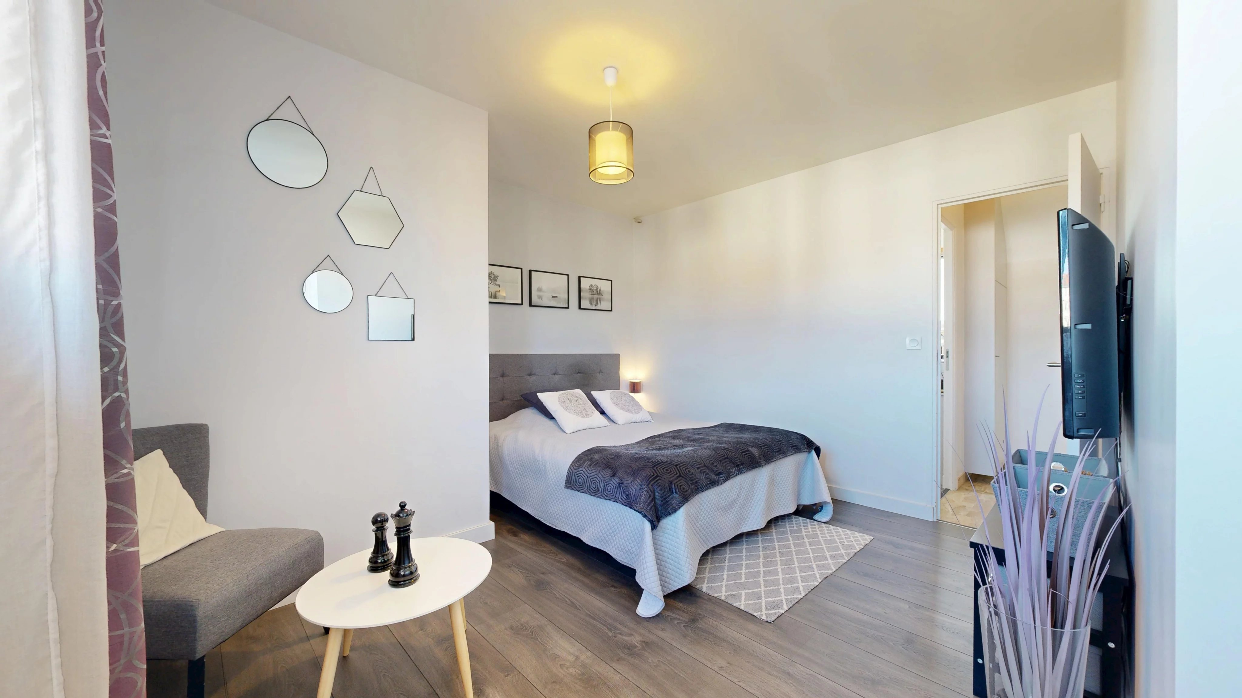 Nous commençons la visite par le rez-de-chaussée comprenant le premier logement, composé d’une entrée, d’une cuisine dinatoire de belle taille, d’une pièce de vie spacieuse offrant un accès direct au jardin et d’une salle de bains avec WC.
