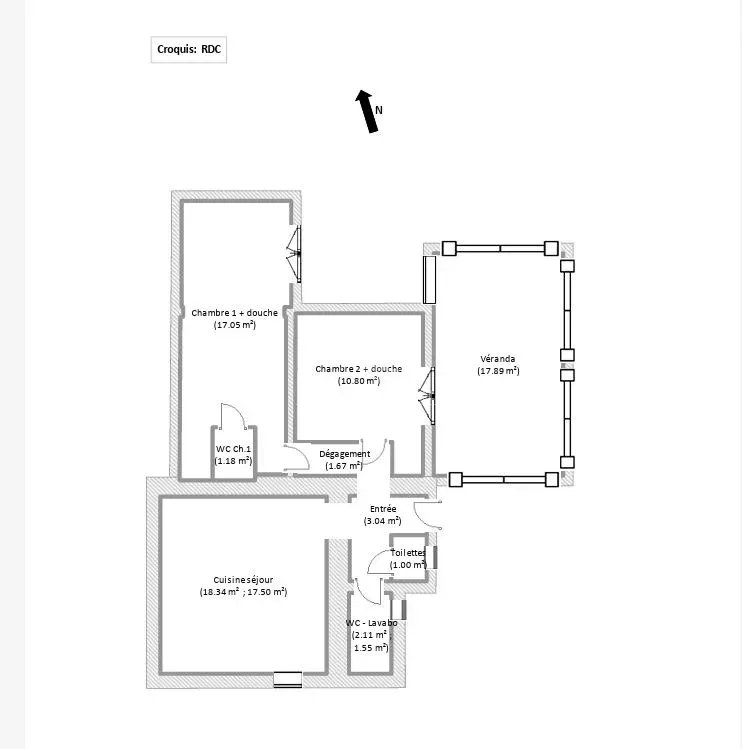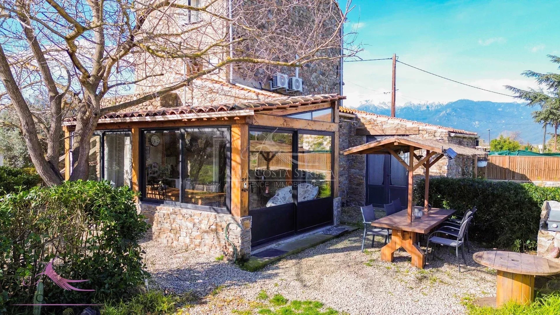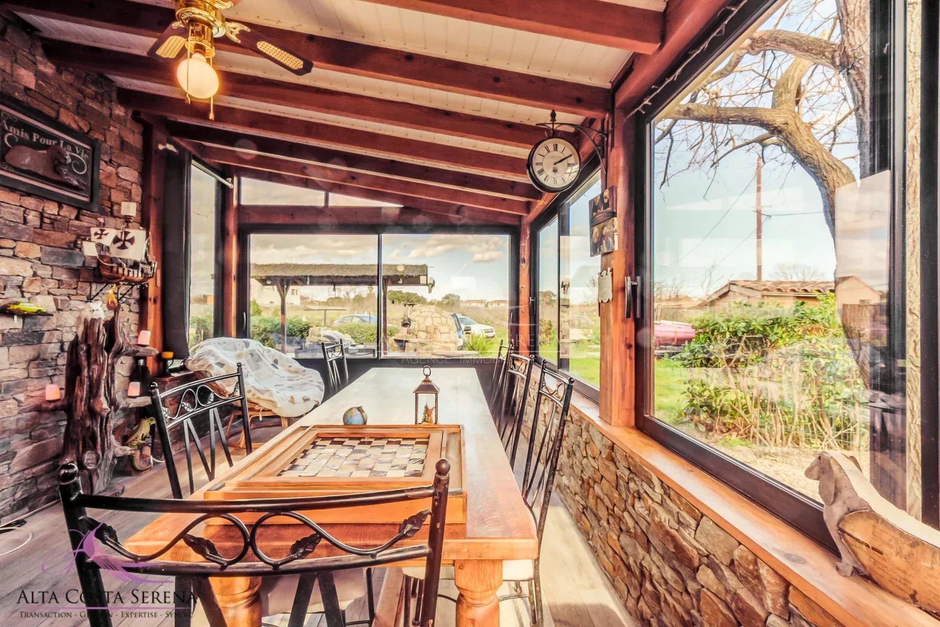 Il propose une entrée, une piece de vie avec cuisine ouverte un espace salon avec poele a granulés, deux WC, une première chambre avec salle d’eau et WC privatifs, une seconde chambre avec salle d’eau, ainsi qu’une véranda lumineuse exposée plein Est, idéale pour profiter des matinées ensoleillées.