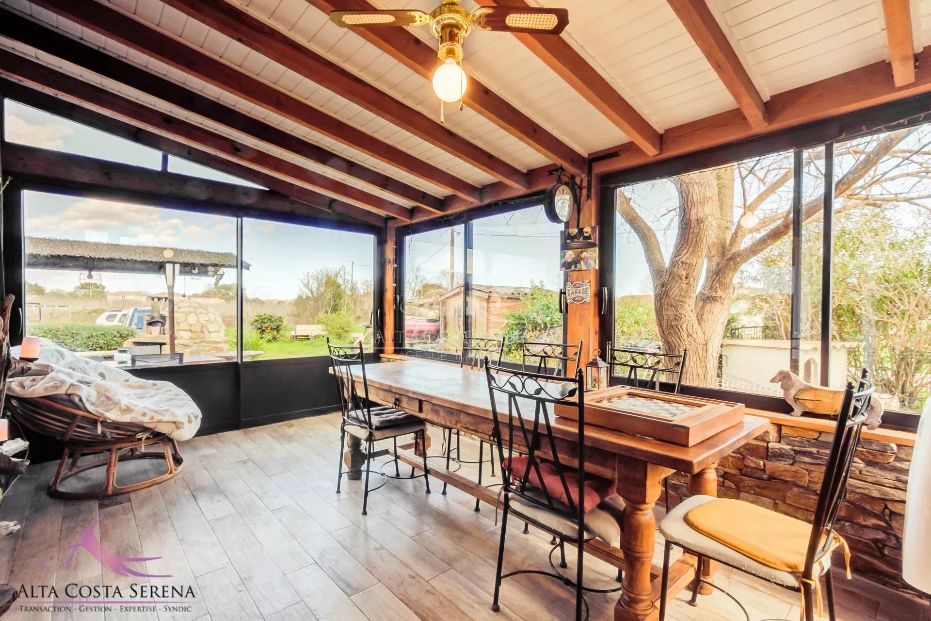 À l’extérieur, vous disposerez d’un terrain privatif de 213 m², aménagé avec un four à pizza, un barbecue et un cabanon, parfait pour des moments conviviaux en famille ou entre amis.