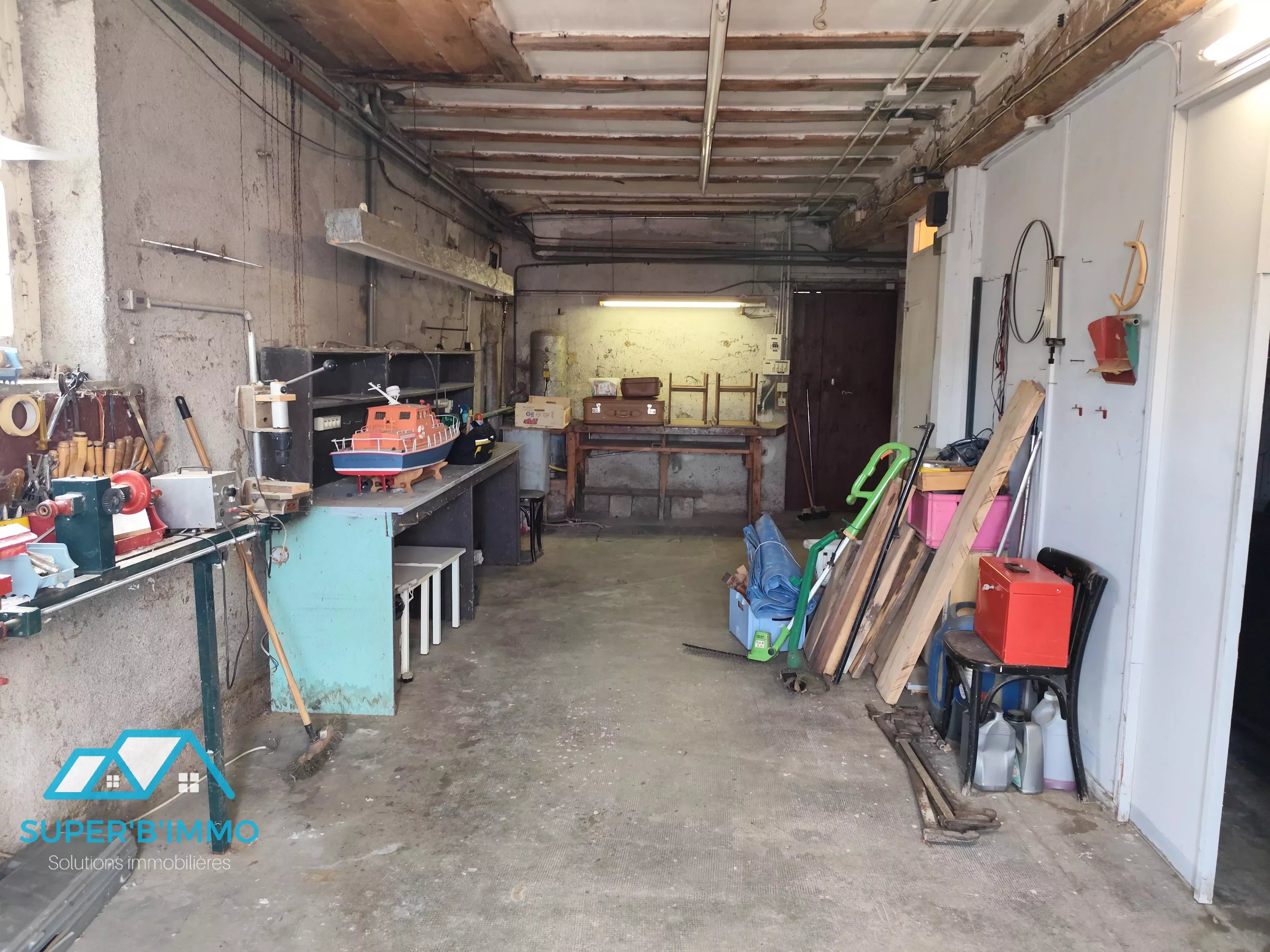 En rdc grand garage, atelier , chaufferie et cave.