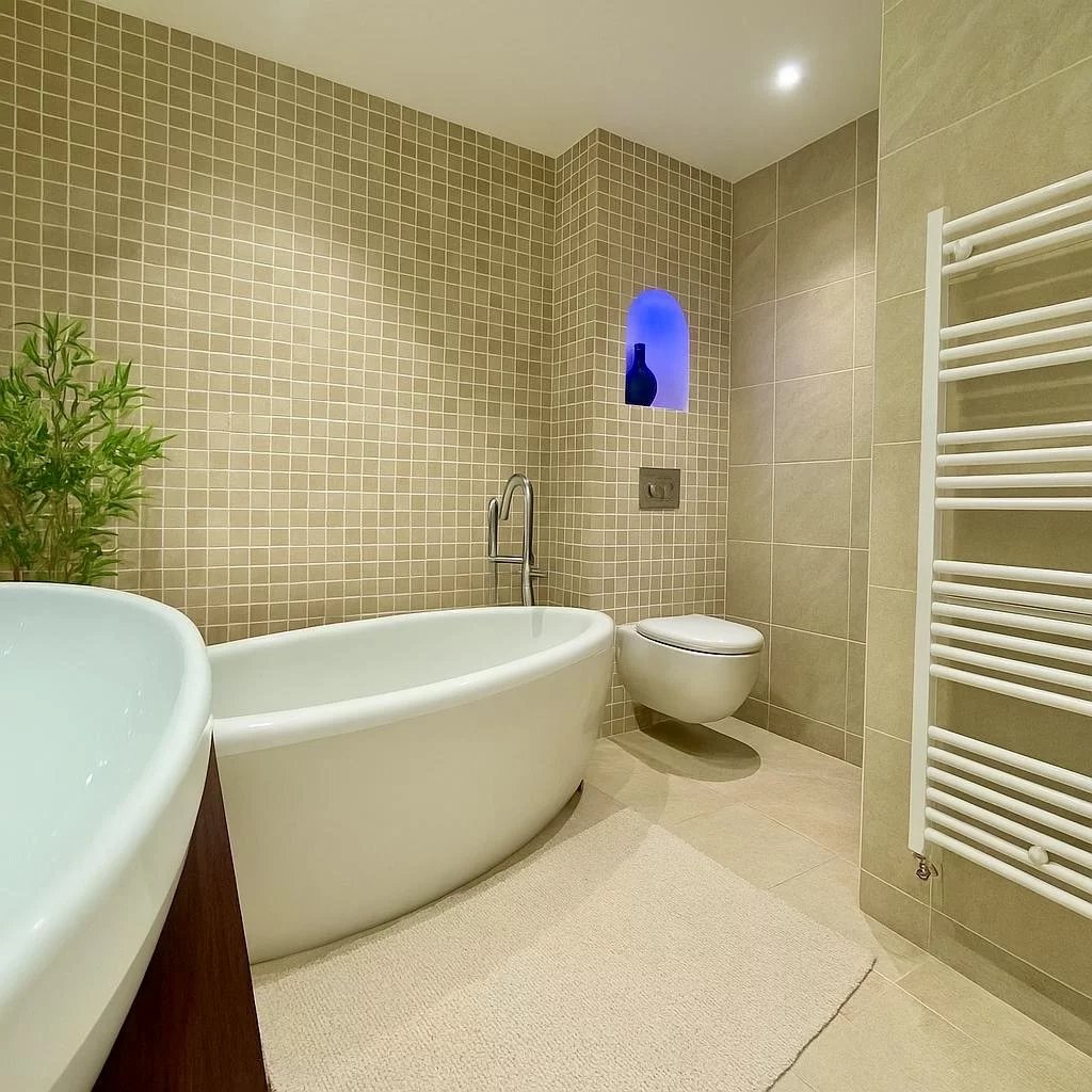 Le garage, accessible directement depuis la cuisine, est particulièrement pratique pour rentrer les courses sans passer par l’extérieur. Un WC séparé est à disposition pour les invités.