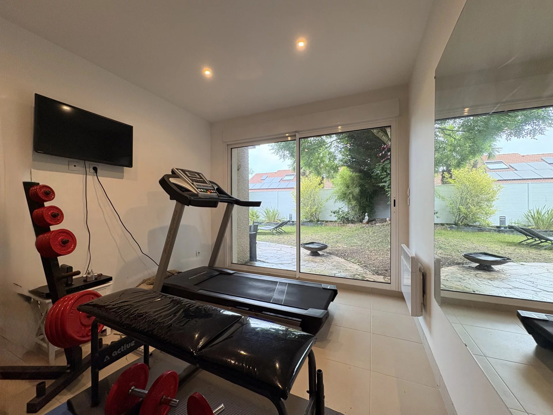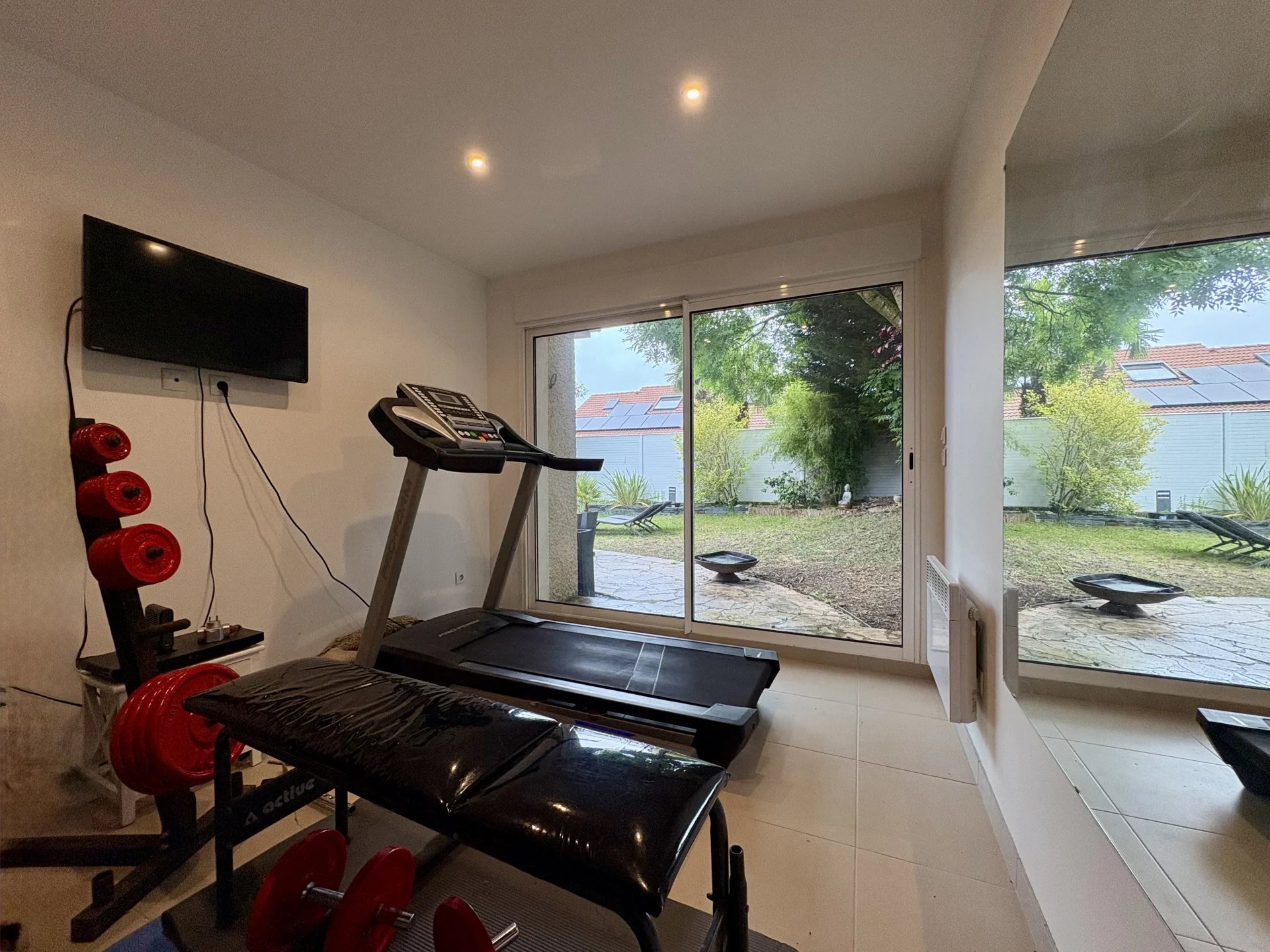 Une dépendance de 23 m², actuellement aménagée en salle de sport, buanderie et atelier, dispose également d’une cave et d’un grenier. Ce volume peut facilement être transformé en studio indépendant ou relié à l’étage de la maison pour y créer une salle de bains supplémentaire.