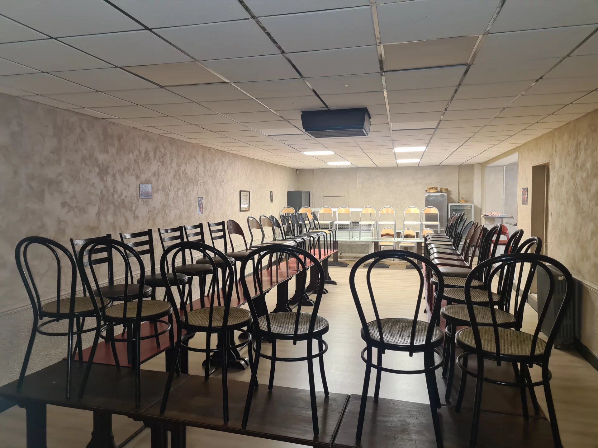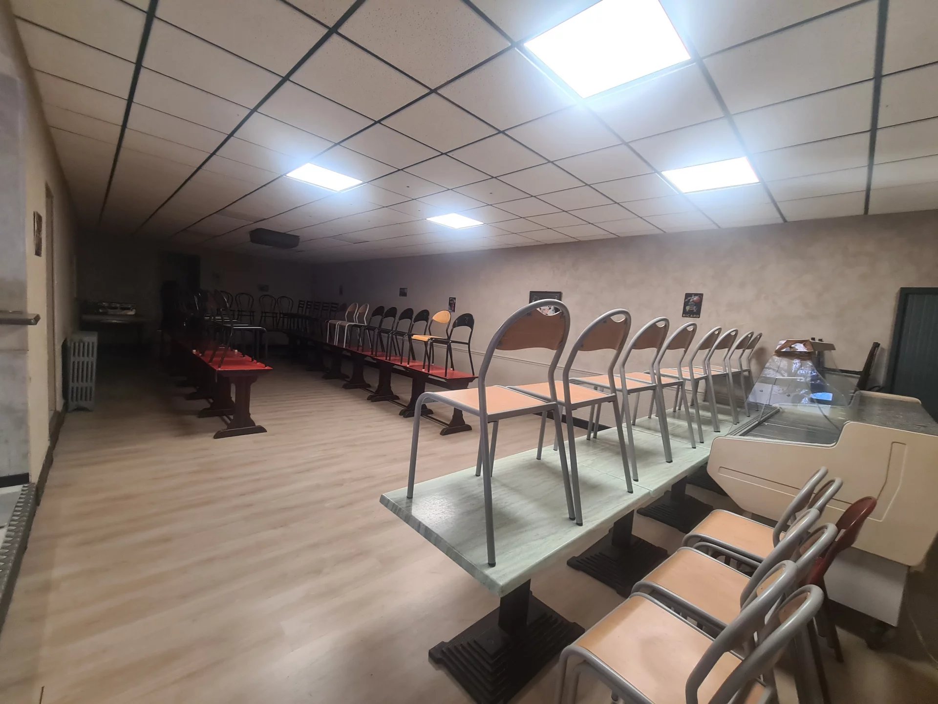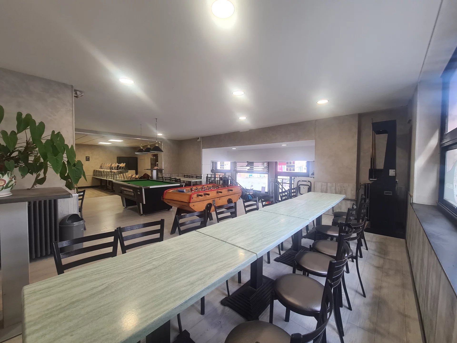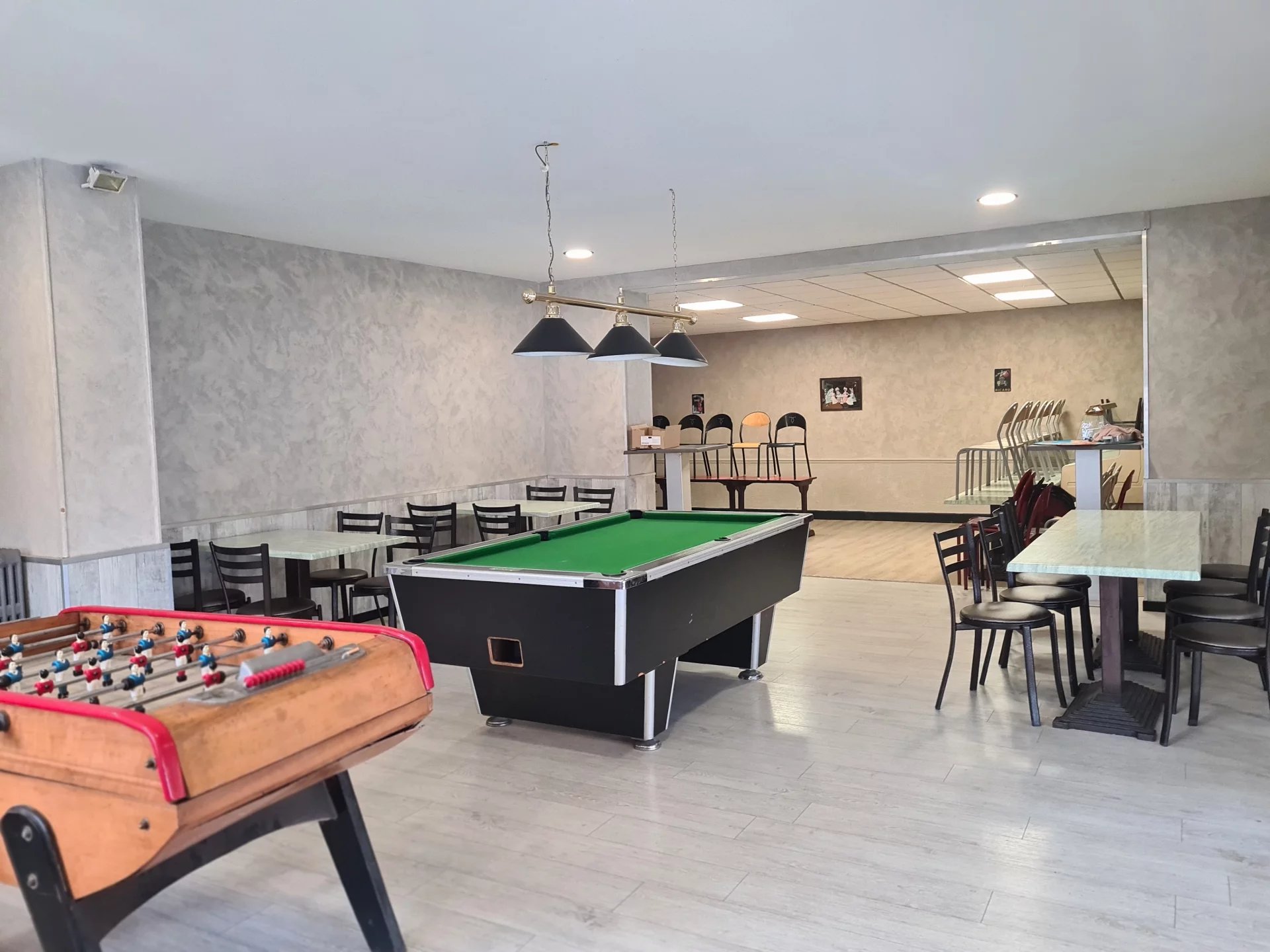 Au rez-de-chaussée. deux salles de brasserie qui sont parfaites pour un restaurant. un café ou un bar. Une cuisine équipée et prête à l'emploi. Une salle de réunion et de billard. idéale pour des événements privés ou des réunions d'affaires. Couloir et WC. pour le confort des clients et des employés.