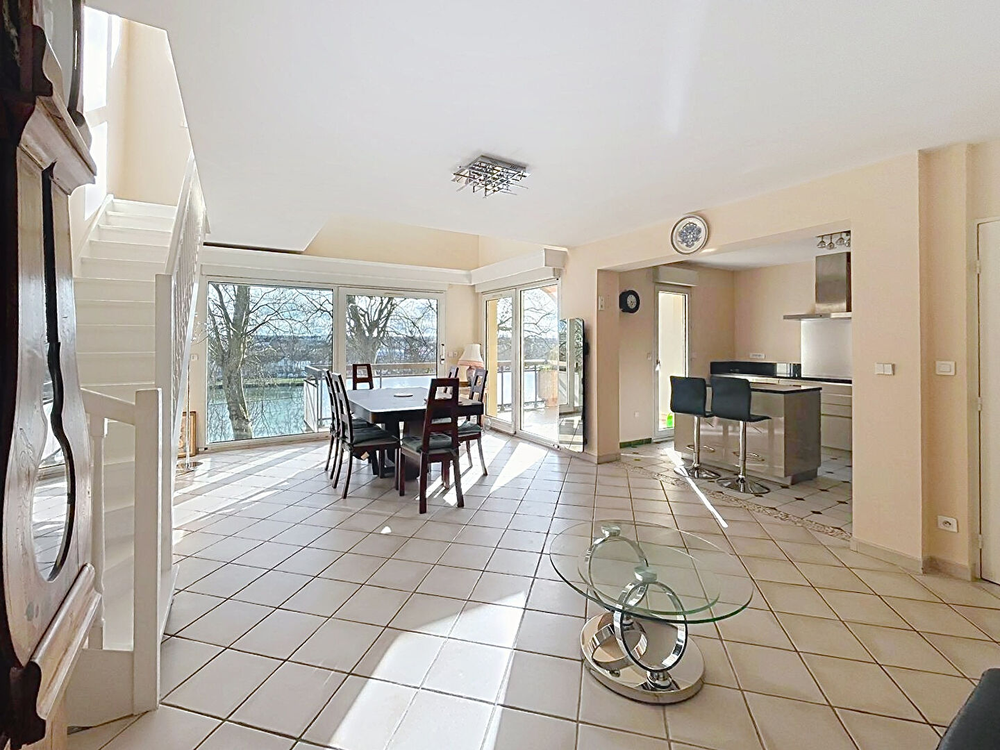 Situé au sein d'une copropriété prisée, sécurisée et parfaitement entretenue, ce superbe duplex de 135 m² offre un cadre de vie rare, alliant confort, volumes et panorama exceptionnel sur la Seine au Mée Sur Seine. Vous serez accueilli par une entrée avec placard ,qui vous mènera à une spacieuse suite parentale, comprenant une chambre de 14 m² offrant un accès à un premier balcon, un dressing ainsi qu'une salle d'eau privative avec WC. Le niveau principal propose également une seconde chambre de 14 m² et un séjour lumineux de 35 m² ouvert sur un balcon offrant une vue sur la Seine. La pièce de vie se prolonge harmonieusement par une cuisine ouverte, aménagée et entièrement équipée, idéale pour recevoir. Au second niveau, un palier dessert une troisième chambre, elle aussi accompagnée de sa salle d'eau privative avec son WC, ainsi qu'un espace rangement très pratique dans l'espace mezzanine. Pour parfaire ce bien rare sur le marché, vous bénéficierez d'un double garage et une cave, de véritables atouts dans ce secteur recherché. Les + : Cave, chauffage électrique, volumes, luminosité, prestations, calme absolu, vue exceptionnelle. Un bien coup de coeur, à visiter sans tarder. Ne manquez pas cette opportunité ! Contactez votre négociatrice en immobilier, Raphaëlle DUMAND de l'agence l'Adresse - Concept Premium - Melun pour plus d'informations et pour organiser une visite ! 07.56.10.55.19 Certaines photos bénéficient de l'IA