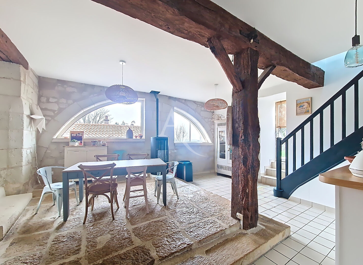 Au coeur de la charmante commune du Puy-Notre-Dame, cette grande maison en tuffeau d'environ 180 m² habitables déploie tout le caractère des demeures anciennes soigneusement préservées. Les murs en pierre apparente, les belles hauteurs sous plafond et la luminosité omniprésente créent une atmosphère chaleureuse et élégante, où chaque espace respire l'authenticité. Aucun travaux n'est à prévoir : la maison a été entretenue avec soin et offre aujourd'hui de très beaux volumes de vie. Dès l'entrée, le ton est donné. Elle mène vers un salon accueillant, animé par un poêle à granulés, puis vers une lingerie discrètement intégrée. La cuisine aménagée s'ouvre sur une vaste salle à manger, baignée de lumière, à l'emplacement de l'ancien pressoir, rappelant l'histoire du lieu. Un bureau ainsi qu'un WC indépendant complètent ce niveau. L'étage offre un bel espace nuit composé de cinq chambres, idéales pour une grande famille ou pour recevoir. Une salle de douche, une salle de bain et un WC indépendant. A l'extérieur, deux terrasses permettent de profiter pleinement des beaux jours, chacune offrant une ambiance différente selon les moments de la journée. Une cave creusée dans le roc vient parfaire l'ensemble, idéale pour le stockage ou pour les amateurs de vin. Notre avis ? "Cette maison conjugue charme, volumes et fonctionnalité dans un environnement paisible et recherché. Une belle opportunité au Puy-Notre-Dame." DPE : C (170) GES : B (6) Ref : 36918 *honoraires à charge Acquéreur (6.51 % honoraires TTC à la charge de l'acquéreur.)