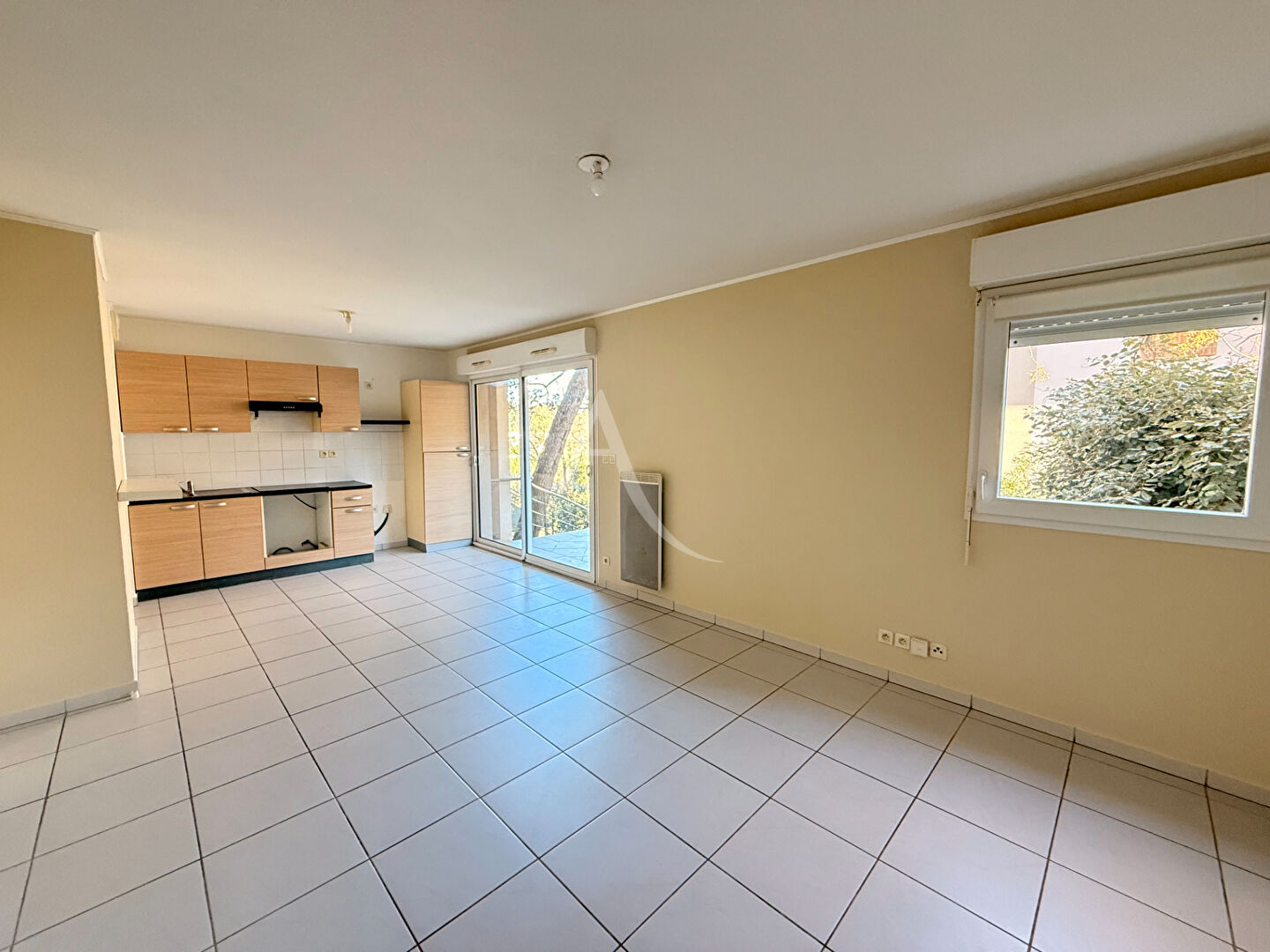Nîmes, route d'Uzès, dans une résidence sécurisée avec piscine, un appartement T2 de 48,77m² avec terrasse et jardin comprenant un hall d'entrée avec placard, une cuisine aménagée et équipée (plaque de cuisson, hotte aspirante) ouverte sur le séjour, une chambre avec placard, une salle de bains avec un wc. Dispose d'une place de parking privée. Disponible de suite. Loyer 675 euros CC (communs et OM). DPE C. Honoraires 590 euros dont 146 euros pour l'état des lieux.