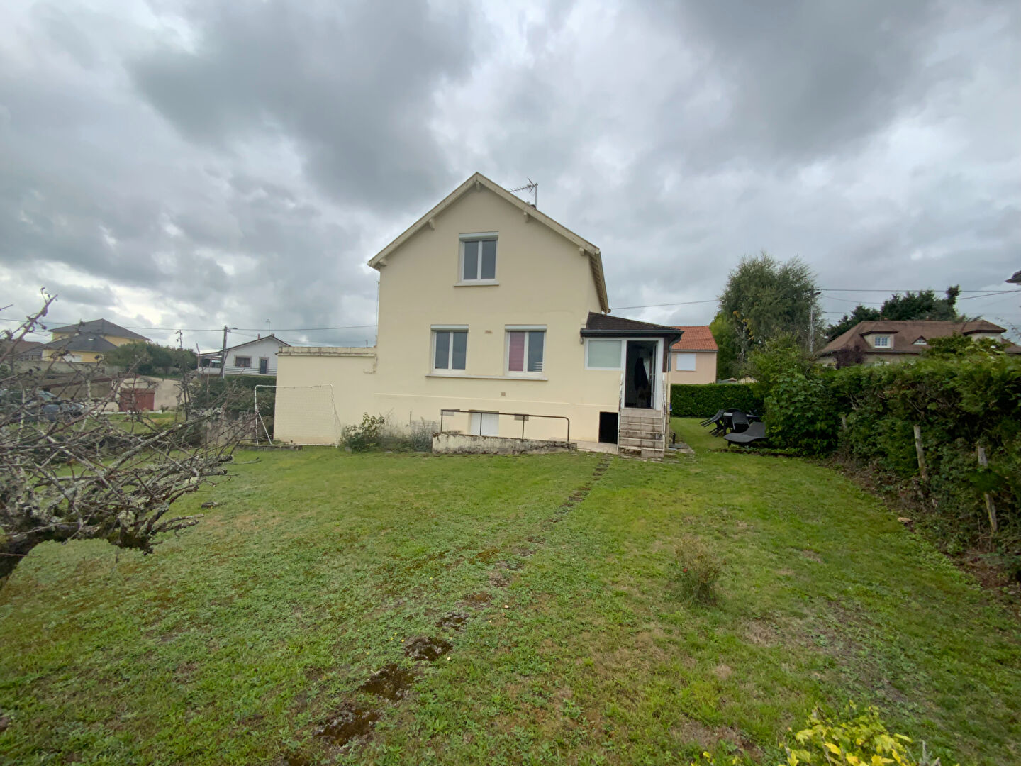 Maison indépendante élevée sur deux caves de 80 m² hab. sur deux niveaux comprenant : Véranda, cuisine équipée, salle à manger/salon, une chambre, water-closet. A l'étage : Palier/dégagement, deux chambres dont une avec placard, salle de bains avec meuble lavabo et w.c. Chauffage central gaz. Garage/atelier de 25 m². Le tout sur agréable terrain clos et arboré de 739 m². A Découvrir.