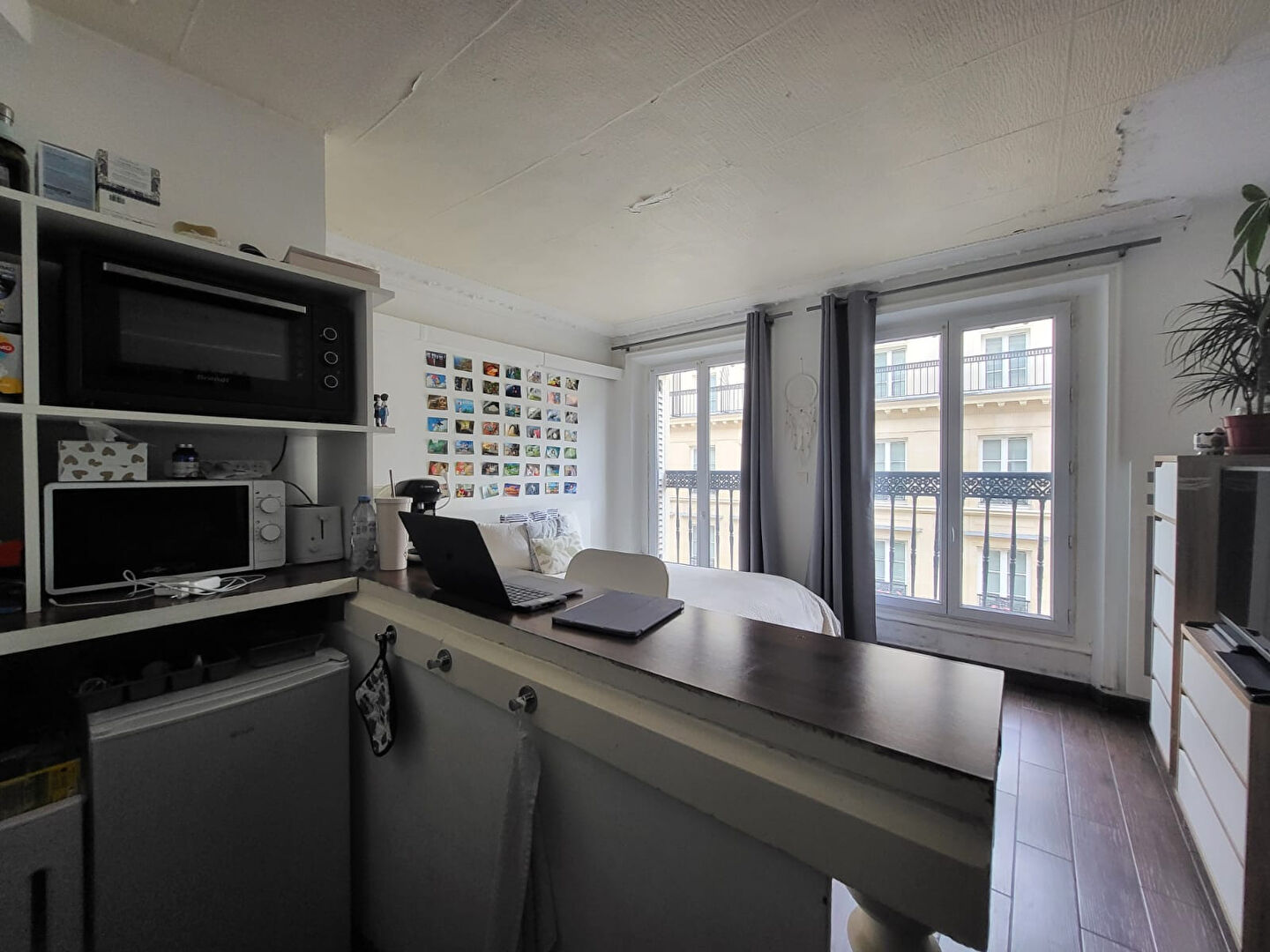 Métro Grands Boulevards, Rue de la Grange Batelière, Dans un bel immeuble ancien en PIERRE DE TAILLE, un studio de 18.37m² carrez au 4eme étage avec ascenseur, composé d'une pièce principale avec coin cuisine donnant sur 2 fenêtres, une salle d'eau douche avec WC, calme et lumineux. A saisir! Contact : 06.64.16.10.85.