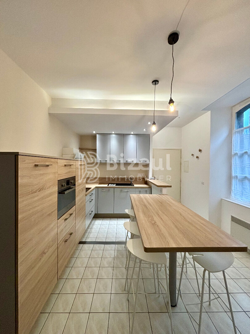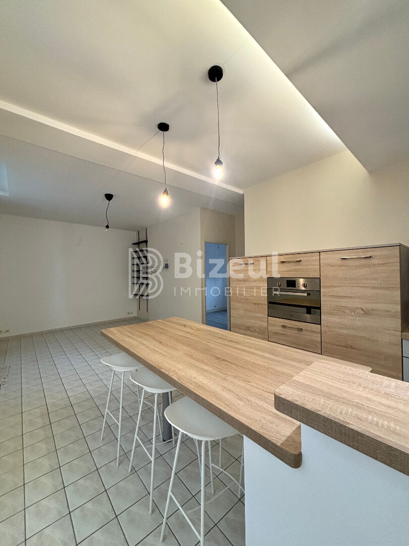 L'agence BIZEUL IMMOBILIER vous propose à la location ce bel appartement T3, situé au coeur d'intra-muros, à proximité de la plage Bon Secours, au rez-de-chaussée d'une résidence calme. Il se compose d'une grande pièce de vie lumineuse avec une cuisine ouverte, aménagée et équipée (meubles hauts et bas, plaque de cuisson, hotte, four, lave-vaisselle), deux chambres et une salle d'eau avec WC. Une toute petite cave privative et une cour commune complètent ce bien. Référence : LEGRANDBE-1 Disponible : de suite Loyer : 800 euros + 40 euros (entretien des parties communes + taxe d'ordures ménagères) : 840 euros Honoraires : 550 euros