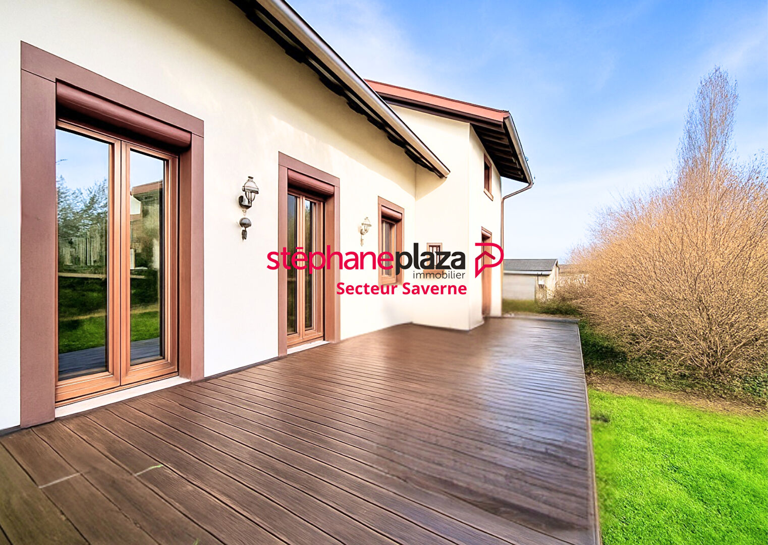 Située dans le quartier recherché du Haut-Barr à Saverne, rue Erckmann Chatrian, cette Maison de Maître de 206 m² offre de beaux volumes et beaucoup de cachet (parquets massifs, hauteur sous plafond de 2,70 m), sur un terrain arboré et clos de 12,13 ares. Elle comprend : - Salon-séjour lumineux de 40 m² avec poêle à bois - Cuisine équipée ouverte avec accès terrasse et jardin - Véranda de 21 m² avec climatisation - 5 chambres dont deux avec salle d'eau - Salle de bains complète (douche, baignoire, double vasque,WC) - Combles aménagés avec sauna - Sous-sol complet avec caves et garage motorisé. Maison de caractère, bien entretenue, dans un environnement calme et très recherché. A découvrir rapidement, contactez-nous! (3.36 % honoraires TTC à la charge de l'acquéreur.)