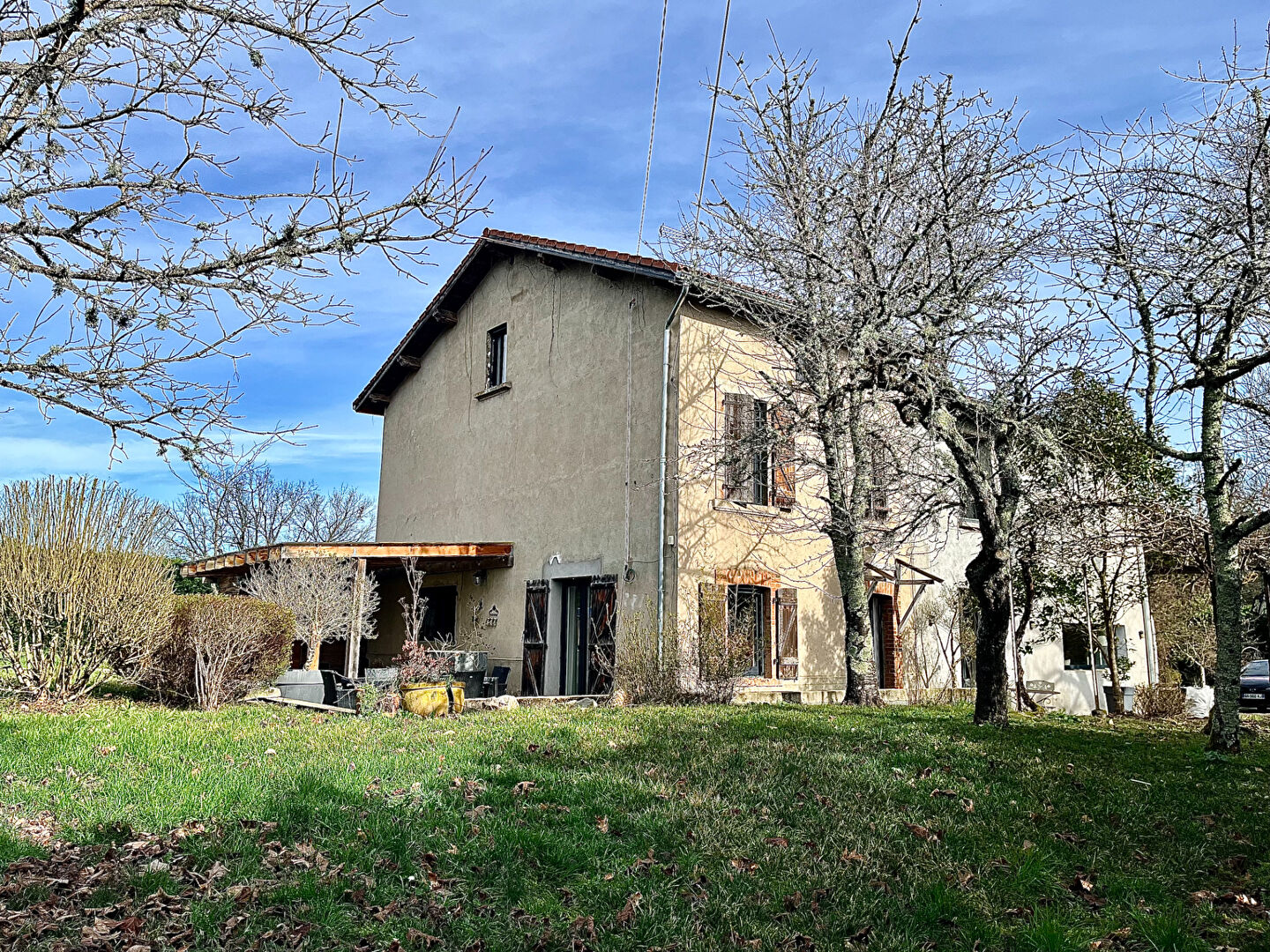 ESCOUTOUX A 12 km de l'entrée d'autoroute de Thiers, et 40km de l'aéroport. Dans un écrin de verdure préservé, maison ancienne, rénovée avec beaucoup de gout et pleine de charme ! Espace de vie au rez de chaussée comprenant un coin salon-séjour de 75m², et un espace cuisine-repas de 40 ! A l'étage, salon cocooning de 40m², 2 chambres (3 possibles), salle de bain spacieuse avec douche et baignoire, et wc indépendant. 2 chambres au dessus. Terrasses bois et cuisine d'été entourent harmonieusement le coin spa/piscine (hors sol). Chalet bois avec terrasse pour une dépendance chic "au fond du jardin" ! DPE : énergie primaire B (81 kWh/m²/an) / gaz à effet de serre A (2kgCO2/m²/an) Cout annuel énergie estimé entre 950 et 1330 euros/an selon estimation DPE sur les prix moyens indexés au 1er janvier 2021. Les informations sur les risques auxquels ce bien est exposé sont disponibles sur le site géorisques : www.georisques.gouv.fr