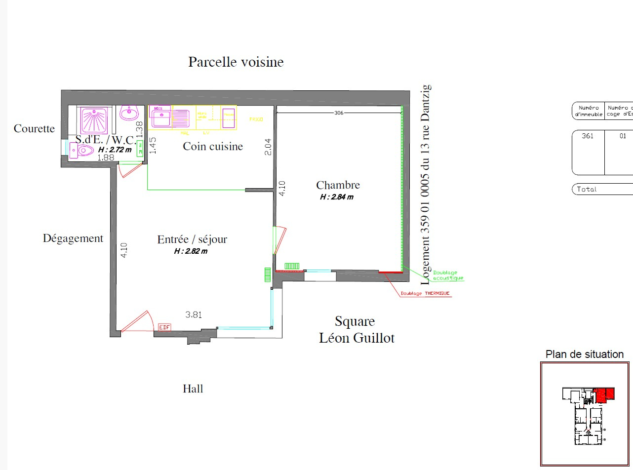 15EME, M° CONVENTION. 2 PIECES 35M² REFAIT NEUF DISPONIBLE DE SUITE. RDC s/ cour immeuble 1930 ravalé. Séjour 14m², cuisine ouverte semi équipée 6m², chambre 13m², salle d'eau avec wc. Parquet, double vitrage. Cave. DPE: D. Loyer 1159 euros chauffage compris.