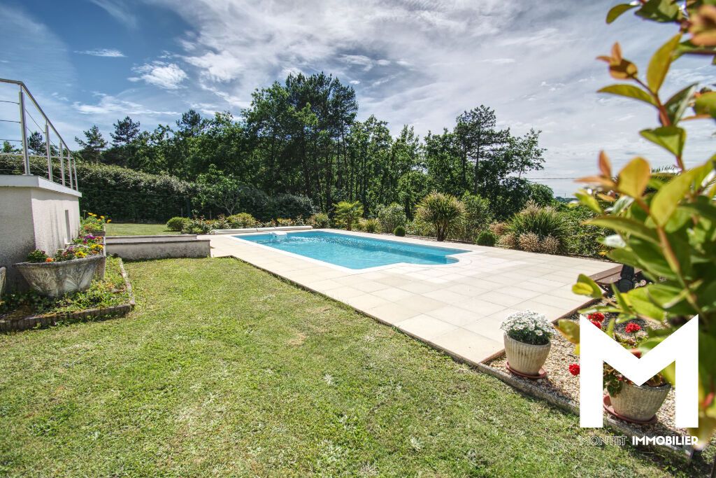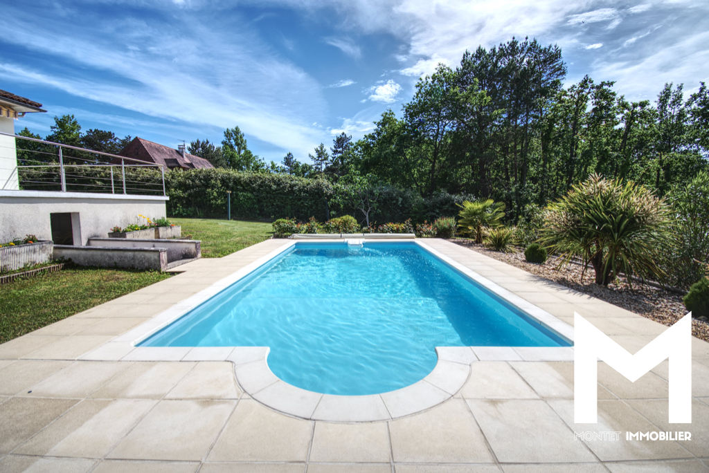 Vendu Montet Immobilier TRÉLISSAC - Magnifique maison située dans un secteur calme et privilégié à deux pas du centre commercial La Feuilleraie - La maison bénéficie d'un parfait état d'entretien et se compose d'une vaste entrée avec rangements qui dessert un salon/salle à manger avec poêle à granulés, une cuisine américaine entièrement équipée donnant sur une belle terrasse qui surplombe le jardin et sa piscine. Côté nuit 4 chambres avec placards intégrés et vu sur piscine, une spacieuse salle d'eau avec double vasque, wc indépendant avec point d'eau. Grand garage et pool-house, le tout entouré d'un très joli parc aménagé d'environ 3200m2 et sa piscine. Photos et vidéo de présentation sur montet-immobilier.com