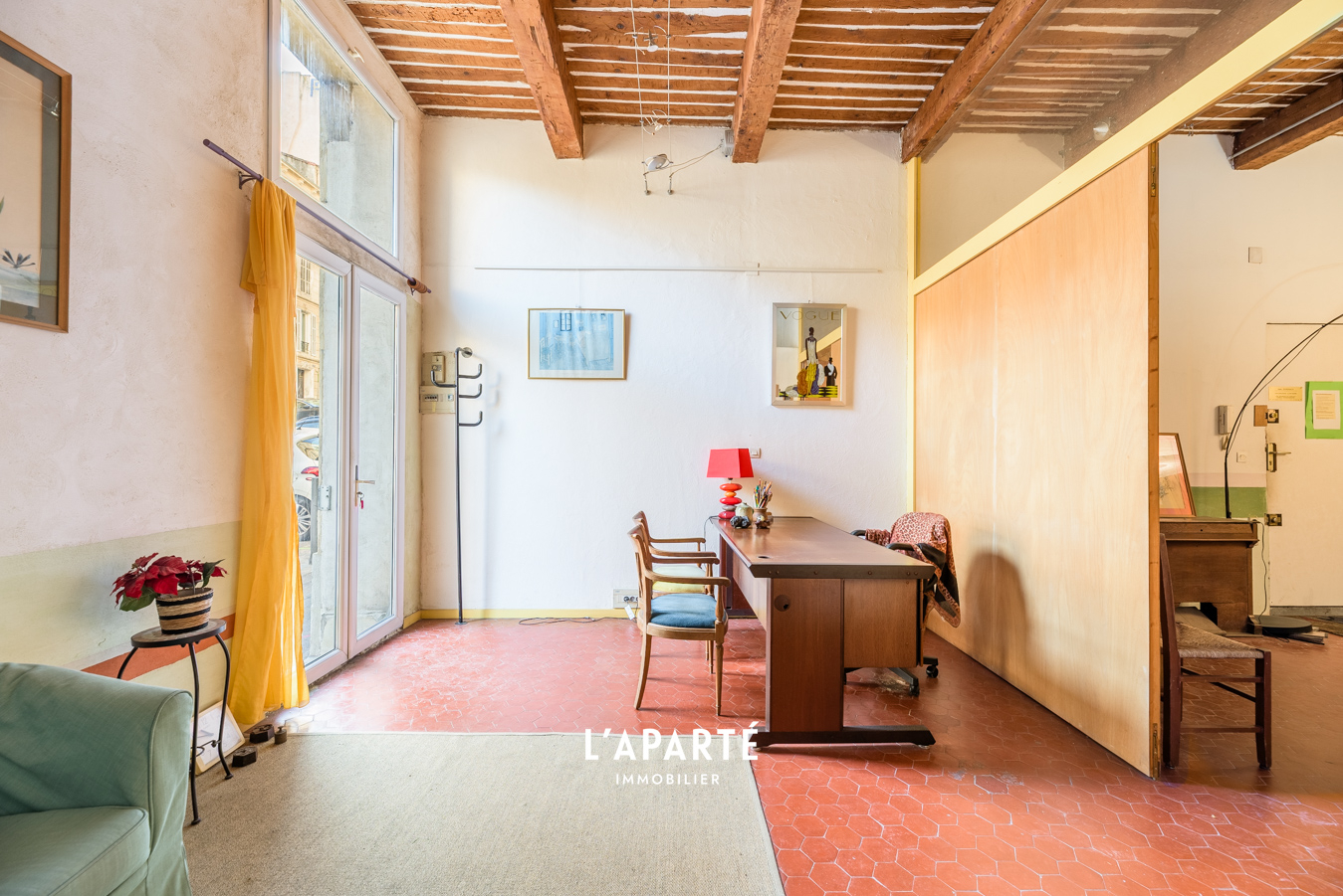 Au croisement de Puget et de Vauban, L'aparté vous propose cet appartement type Loft de 67 m² (55 m² en loi Carrez), un espace rare où le charme brut rencontre un potentiel certain. Situé au rez-de-chaussée d'un immeuble de caractère, cet appartement se compose actuellement de deux pièces distinctes : un bureau et une salle de séjour, ainsi qu'un WC séparé. Ce bien séduit par sa hauteur sous plafond généreuse et ses poutres apparentes, qui lui confèrent une âme authentique et une atmosphère chaleureuse. Entièrement à rénover, il représente une toile blanche pour ceux qui rêvent d'un espace sur mesure. Son ambiance intimiste, renforcée par une exposition unique, en fait un lieu cocooning, idéal pour une décoration soignée et des éclairages étudiés qui sublimeront chaque détail. Offrant un cadre de vie agréable à deux pas des commerces, des transports et des bonnes adresses du secteur. N'hésitez pas à nous contacter pour des informations complémentaires. Honoraires à la charge du vendeur. Foncier : 450 euros Performance énergétique : Non communiqué ( absence de chauffage) Emissions GES : Charges de copropriété : 70
