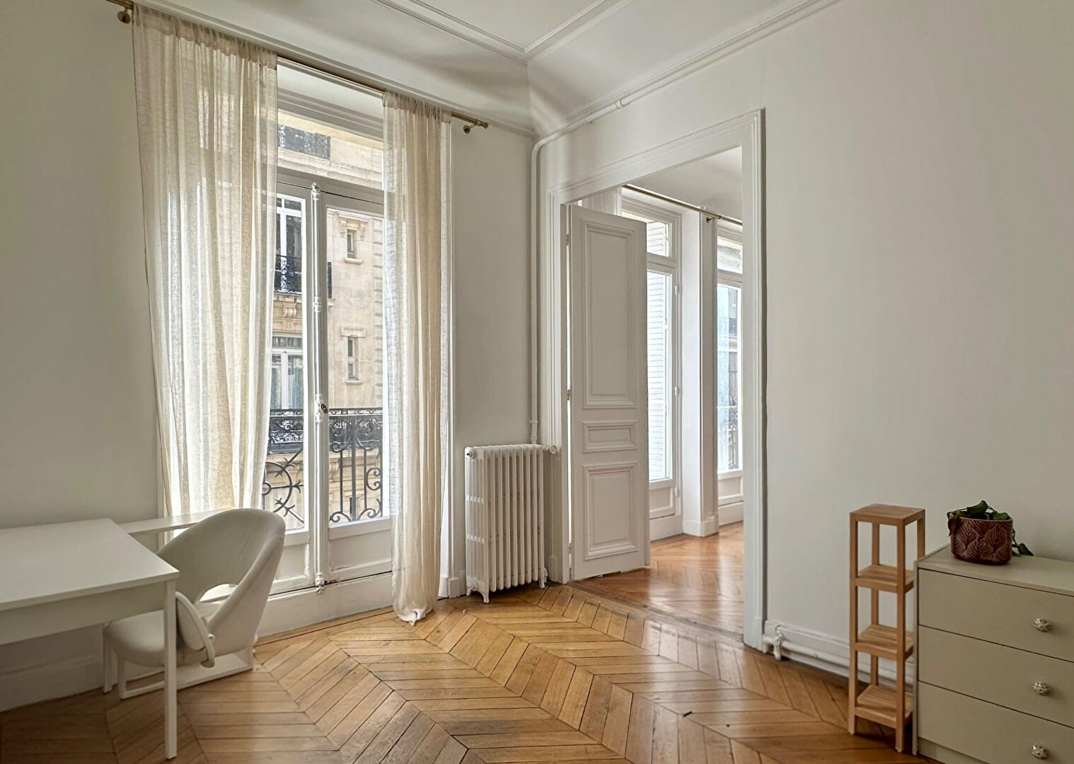 A deux pas de l'avenue Montaigne, au coeur du très recherché Triangle d'Or, découvrez ce magnifique 3 pièces de 73 m² situé au 2ème étage avec ascenseur d'un immeuble haussmannien en pierre de taille, avec gardien et parties communes de standing. Entièrement rénové en 2023, en conservant le charme de l'ancien : parquet en point de Hongrie, cheminée en marbre, moulures. Il dispose d'une entrée, un double séjour baigné de lumière, ouvrant sur un large balcon filant exposé Sud-Ouest (possibilité de recréer une seconde chambre), une cuisine indépendante aménagée et équipée, une chambre spacieuse sur cour, au calme, un dressing, une salle d'eau avec douche à l'italienne et WC. Chauffage et eau chaude individuels au gaz, DPE E. Bail code civil uniquement. Honoraires : 15% du loyer annuel TTC.