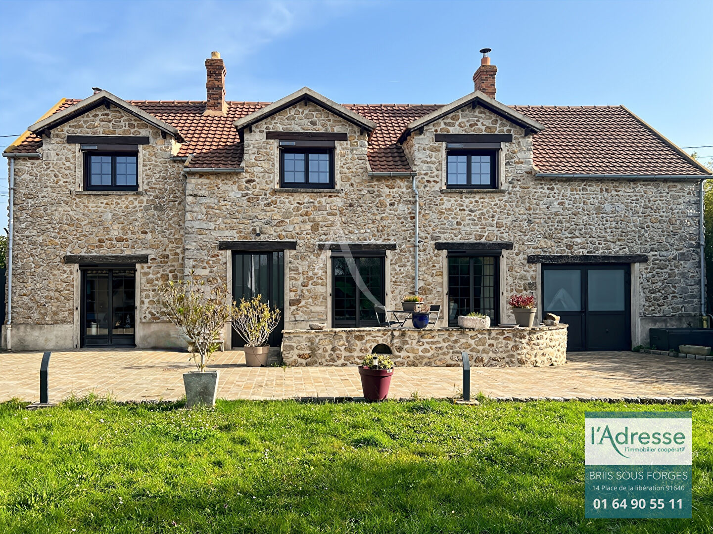 VENDU ! SOUS COMPROMIS DE VENTE En exclusivité ! A seulement 4 km de Briis-sous-Forges Maison ancienne entièrement rénovée d'environ 155 m² habitables, offrant de beaux volumes et un charme authentique sublimé par une rénovation soignée. Dès l'entrée, baignée de lumière et équipée de rangements, vous découvrez un espace de vie chaleureux composé d'un séjour / salle à manger avec poêle à bois et poutres apparentes, ouvert sur une agréable terrasse. La cuisine, spacieuse et aménagée, est complétée par une arrière-cuisine à usage de cellier / buanderie avec accès direct à la cave. Une salle d'eau et un WC viennent parfaire le rez-de-chaussée. A l'étage, une belle pièce palière distribue une suite parentale avec dressing aménagé, trois autres chambres (dont une pouvant aisément être divisée selon vos besoins), une salle de bains et un WC indépendant. Côté extérieur, les prestations sont au rendez-vous : portail électrique, aire de stationnement en pavés, deux garages, terrasse couverte sous auvent, spa, jardin clos d'environ 1 000 m² avec puits. Électricité et installation gaz récentes, huisseries récentes, maison parfaitement entretenue. Le tout situé à Saint-Maurice-Montcouronne dans un environnement calme et verdoyant, idéal pour les promenades en pleine nature, tout en profitant d'un village vivant avec écoles, associations sportives et culturelles, et navettes vers la gare autoroutière de Briis-sous-Forges. Un bien familial clé en main, alliant cachet et confort moderne.