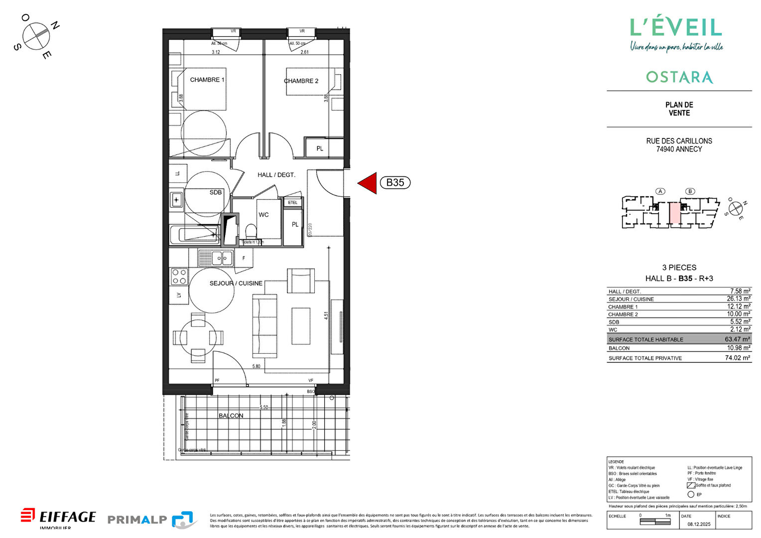 ANNECY-LE-VIEUX - Résidence OSTARA | T3 de standing avec extérieur | Adresse premium, confort du neuf Prix d'appel en cours 445 000 euros TTC hors annexes au lieu de 460 000 euros hors annexes - 3eme étage - VEFA - Livraison prévisionnelle 4 - trimestre 2027 Dans un secteur recherché d'Annecy-le-Vieux, au sein de la résidence OSTARA, ce T3 de standing offre un équilibre rare : 63 m² optimisés, balcon de 11 m² exposé Sud-Est (lumière au top, café du matin validé), et un cadre de vie pensé pour conjuguer confort, praticité et valeur patrimoniale. L'ADRESSE : ANNECY-LE-VIEUX, LE BON COMPROMIS - Un emplacement qui combine calme résidentiel et accès rapide aux essentiels du quotidien (commerces, services, transports, axes principaux). - Un environnement qualitatif et durablement recherché : idéal pour vivre et pour bien revendre. LA RÉSIDENCE OSTARA : LIGNE CONTEMPORAINE et SÉRÉNITÉ - Résidence récente/neuve aux codes architecturaux actuels : lignes épurées, matériaux soignés, belles ouvertures. - Construction répondant aux dernières normes environnementales (RE 2020, NF Habitat / éco-construction), idéale pour maîtriser ses consommations et valoriser son patrimoine. - Accès sécurisé, parties communes soignées, local vélos et stationnements/annexes (en option). L'APPARTEMENT : T3 63 m² + BALCON 11 m² - 3e étage avec ascenseur - Exposition Sud-Est : très belle luminosité, agréable en toute saison - Pièce de vie séjour/cuisine conviviale ouvrant sur un balcon de 11 m² : repas, détente et télétravail sans pousser les murs - Deux chambres bien proportionnées - Salle de bains, WC séparés, rangements intégrés - Chauffage et isolation dernière génération : confort au quotidien, charges maîtrisées POINTS FORTS - Adresse recherchée : Annecy-le-Vieux reste une valeur sûre - Typologie T3 très demandée (résidence principale comme investissement) - Confort du récent/neuf : zéro travaux, sérénité technique et valorisation dans le temps - Balcon 11 m² Sud-Est : un vrai coin extérieur POUR QUI ? - Résidence principale : couple, jeune famille ou actif souhaitant un appartement qualitatif, bien placé, avec extérieur - Investisseur patrimonial : secteur premium, demande locative solide, bien liquide à la revente Dossier complet sur demande : plans, notice, disponibilité, modalités.