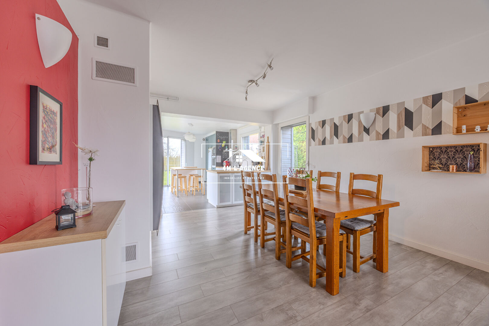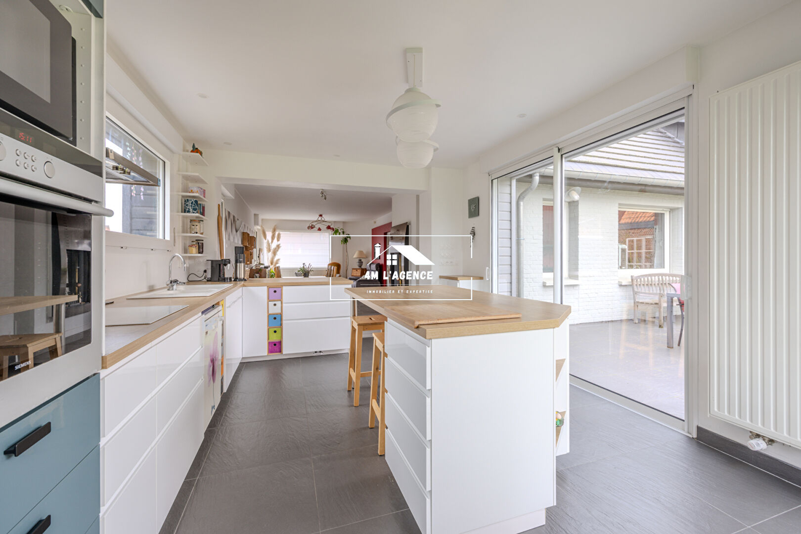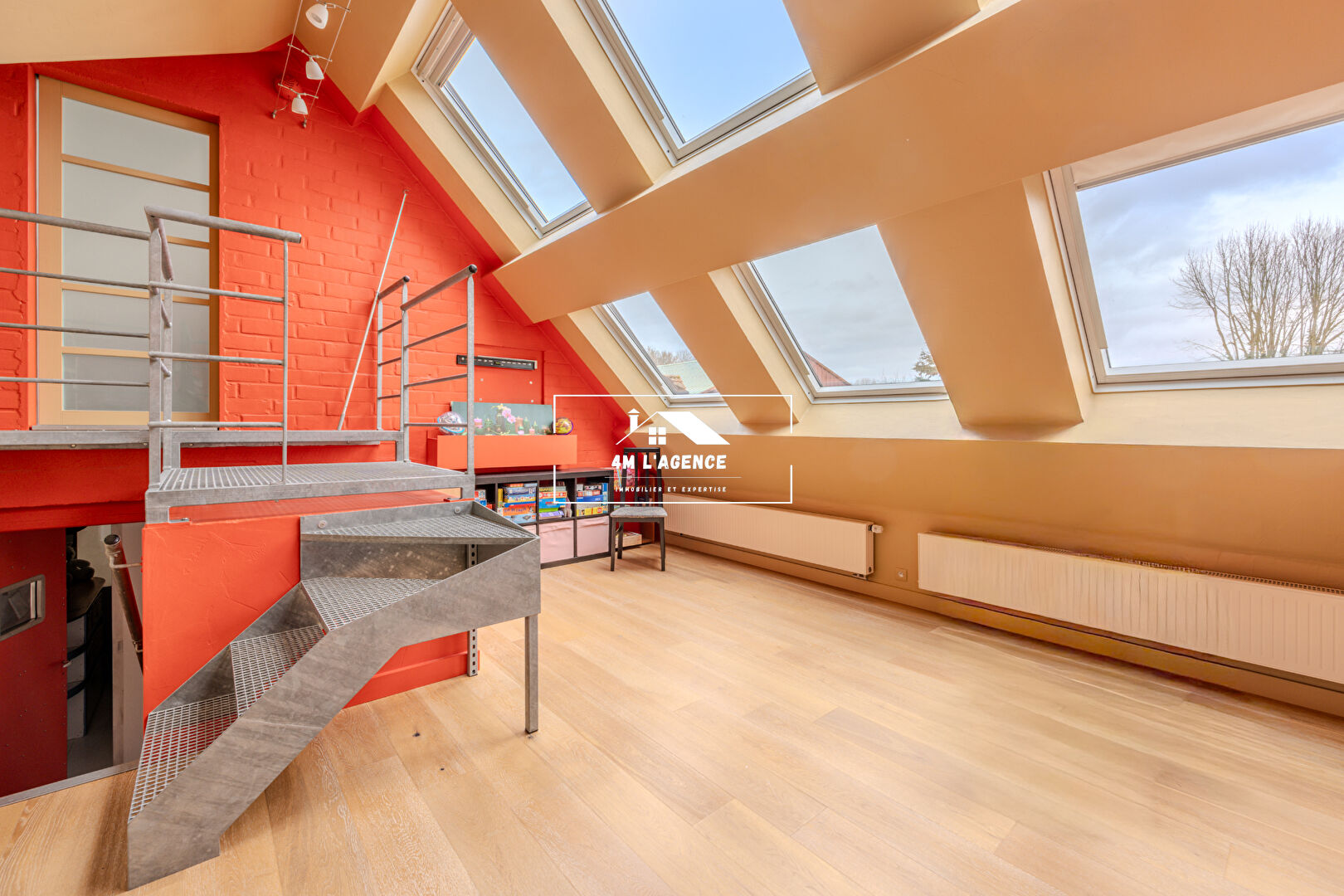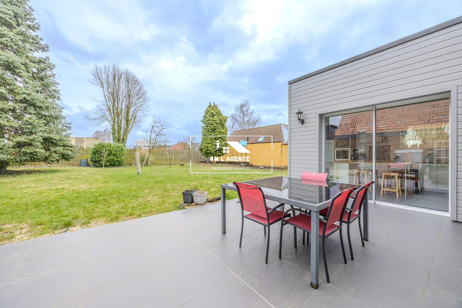 Dans un environnement calme et verdoyant, 4M l'Agence ? Templeuve-en-Pévèle vous propose de découvrir cette belle maison contemporaine développant 175 m² habitables, édifiée sur une parcelle généreuse de 1 312 m². Une adresse idéale pour les familles à la recherche d'espace, de luminosité et de qualité de vie, à proximité immédiate des commodités. Dès l'entrée, vous serez séduits par les beaux volumes et la luminosité naturelle de la maison. Le rez-de-chaussée accueille une vaste pièce de vie chaleureuse, baignée de lumière grâce à sa triple exposition est-sud-ouest, idéale pour partager des moments conviviaux en famille ou entre amis. La cuisine, fonctionnelle et harmonieusement intégrée, complète parfaitement cet espace de vie. Ce niveau dispose également de deux chambres ou bureaux, parfaits pour le télétravail, une activité professionnelle à domicile ou des chambres supplémentaires selon vos besoins. Une salle de bains ainsi qu'un WC indépendant complètent le rez-de-chaussée. A l'étage, le premier niveau dessert deux chambres confortables et un dressing, formant un espace nuit pratique et bien organisé. Le deuxième niveau offre un très grand palier lumineux, idéal pour un espace télétravail, une salle de jeux ou une salle de sport, ainsi que deux chambres supplémentaires, une salle d'eau et un WC, garantissant un confort optimal pour toute la famille. A l'extérieur, le vaste terrain de 1 312 m² constitue un véritable atout : jardin agréable, aire de jeux, terrasse, potager ou projet paysager? les possibilités sont nombreuses pour profiter pleinement des beaux jours. Un double garage ainsi que des stationnements extérieurs viennent compléter ce bien et faciliter le quotidien. Lumineuse, spacieuse et offrant un fort potentiel, cette maison représente une opportunité rare sur le secteur. Elle séduira sans aucun doute les familles en quête d'un cadre de vie paisible, à deux pas de Templeuve. (2.86 % honoraires TTC à la charge de l'acquéreur.)