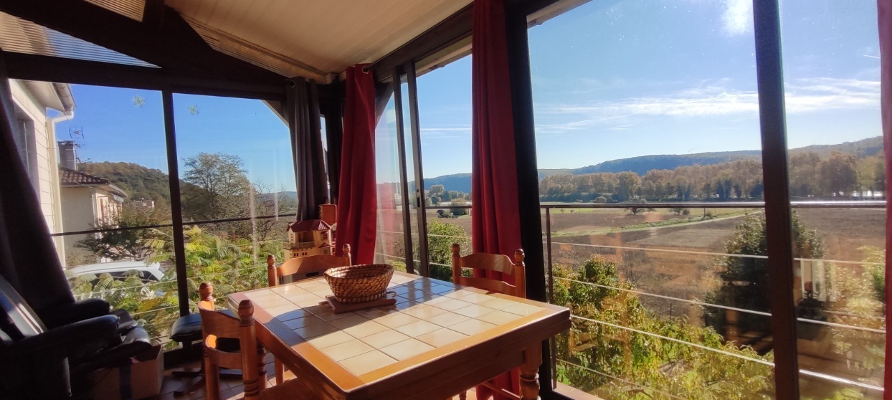 Elle est composée d'une pièce de vie avec coin cuisine équipée de 31 m², une véranda chauffée avec vue dégagée, 2 chambres de 12 m², une salle d'eau moderne avec douche