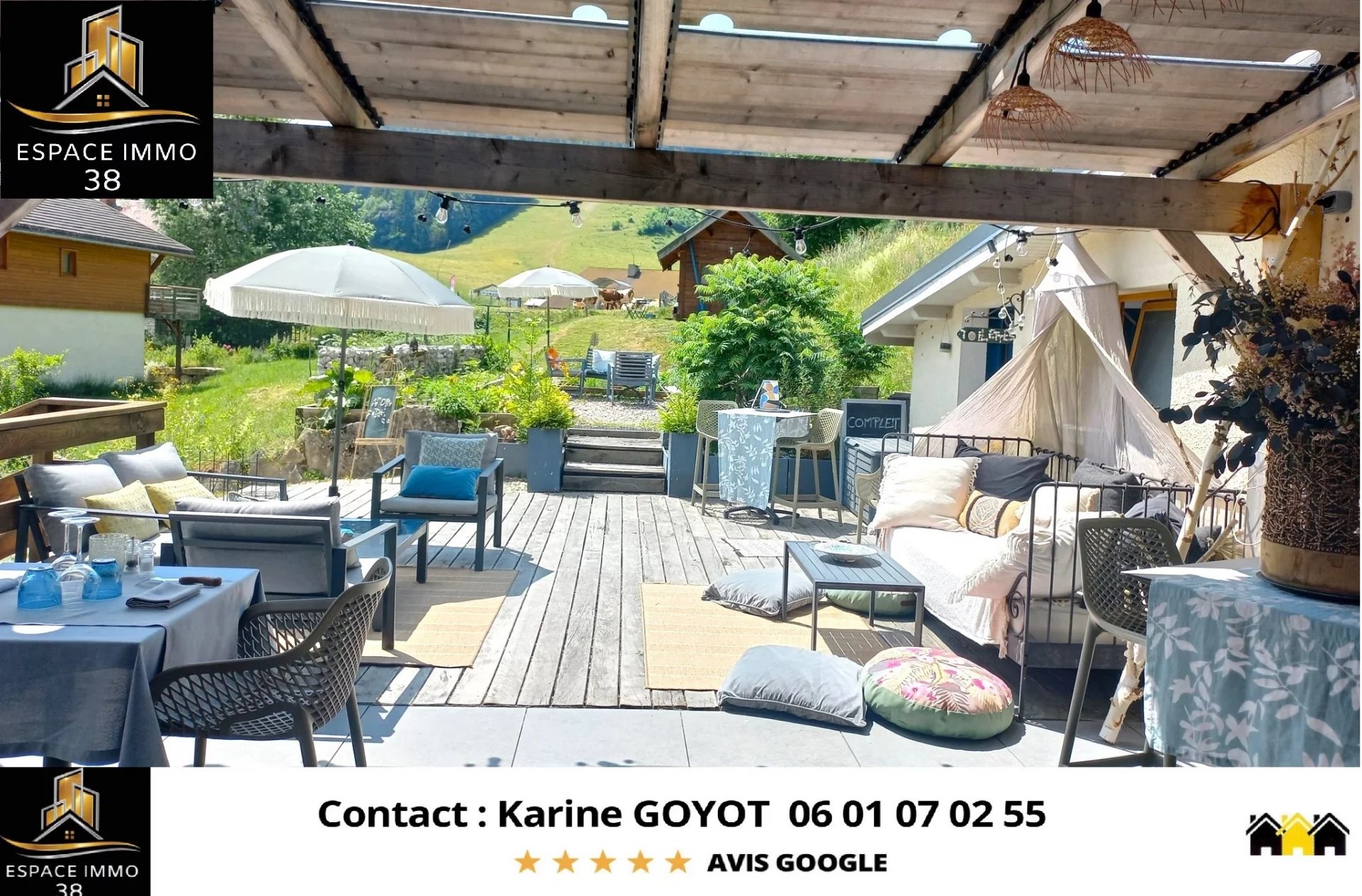 Méaudre .ESPACE IMMO 38 (Karine GOYOT o6 01 07 02 55 )vous propose à la vente ce restaurant comprenant local commercial , fond de commerce ,appartement de fonction et annexes sur un terrain de 1123m2. Une très belle opportunité d'activité professionnelle dans un cadre de vie exceptionnel et préservé ! Cet établissement est situé au pied des pistes de ski et des chemins de randonnées ,à quelques minutes à pieds du centre village de Méaudre et à proximité immédiate de nombreuses places de stationnement. C'est dans une ambiance très cosy que le restaurant propose actuellement une cuisine de grande qualité ,bénéficiant d'une excellente réputation. La décoration intérieure en fait un lieu atypique et très chaleureux en toute saison : L'hiver avec son poêle à granulés et sa vue sur les pistes enneigées, et dès les premiers rayons du soleil ,avec sa grande terrasse d'environ 50m2 avec pergola , grand jardin Sud et petit chalet annexe permettant notamment la vente à emporter . La pièce principale est spacieuse (près de 74m2) et offre un beau plafond cathédral . Une grande chambre ainsi qu'une mezzanine ont été aménagées à l'étage . La cuisine professionnelle est entièrement équipée et bénéficie d'un matériel très récent et de qualité . De nombreux espaces de rangement et stockage sont disponibles ( Remise de 42 m2 ,cave de 13,50m2 et garage de plus de 26m2 ,...). Un appartement de fonction complète le bien en rdc. D'une surface de 44,69m2 ,il offre un séjour/cuisine de plus de 25m2 ,une grande chambre ,wc et salle de douche . Chauffage électrique avec radiateurs récents. Le restaurant est chauffé grâce à un poêle à granulés neuf . Toutes les fenêtres et portes fenêtres sont neuves ,réalisés par un artisan local ( Menuiseries bois avec double vitrage à isolation renforcée). En option : Les propriétaires vendent aussi un gîte de 105m2 comprenant 5 chambres pour une capacité d'accueil de 14 personnes . Idéale si vous souhaitez vivre sur place avec votre famille ou si vous souhaitez bénéficier d'un bon rendement locatif ! ( Vendu 380.000€ honoraires agence inclus avec 2 places de stationnement ). Les +:- Un cadre de travail et de vie exceptionnel ,dans village de montagne dynamique en toute saison. -Un aménagement très chaleureux et cosy -Un beau potentiel de développement -De nombreuses places de stationnements à proximité -Une excellente réputation -Un appartement de fonction et de nombreux espaces de stockage. -Possibilité d'acheter en sus ,un gîte de 105m2 Si vous souhaitez vous lancer dans un projet professionnel dans un cadre préservé ,avec une qualité de vie exceptionnelle ,n'hésitez pas à me contacter pour obtenir plus de renseignements . PRIX DE VENTE : 570.000€ frais d'agence inclus à la charge du vendeur . CONTACT : Karine TEL : o6 01 07 02 55 Mail: espaceimmo.goyot@hotmail.com Cette annonce immobilière a été rédigée par Karine GOYOT ,agent commerciale en immobilier immatriculée au RSAC de Grenoble sous le numéro 415.296.797 La liste des risques auxquels ce bien est exposé est disponible sur Géorisques : www.//géorisques.gouv.fr