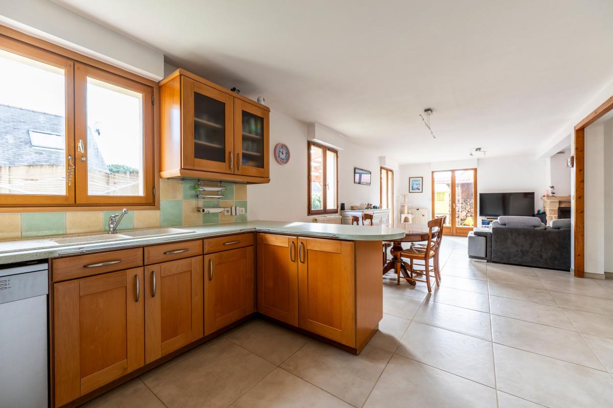 Au rez-de-chaussée, vous découvrirez une cuisine ouverte sur une spacieuse pièce de vie lumineuse agrémentée d'une cheminée, une grande buanderie, une chambre, une salle d'eau ainsi qu'un wc suspendu indépendant.