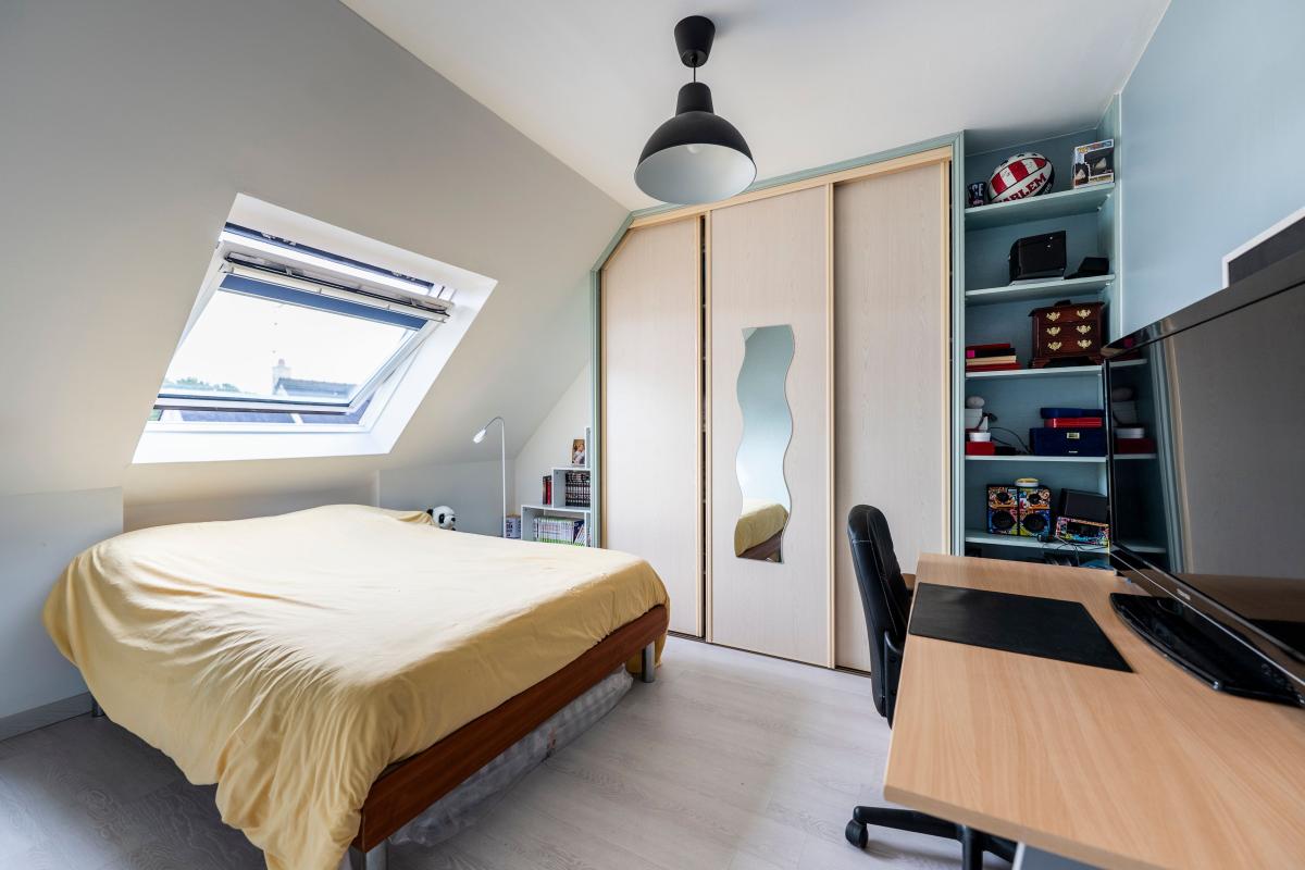 À l'étage, un palier distribue trois chambres dont une avec dressing, un espace détente et une salle de bains avec wc.